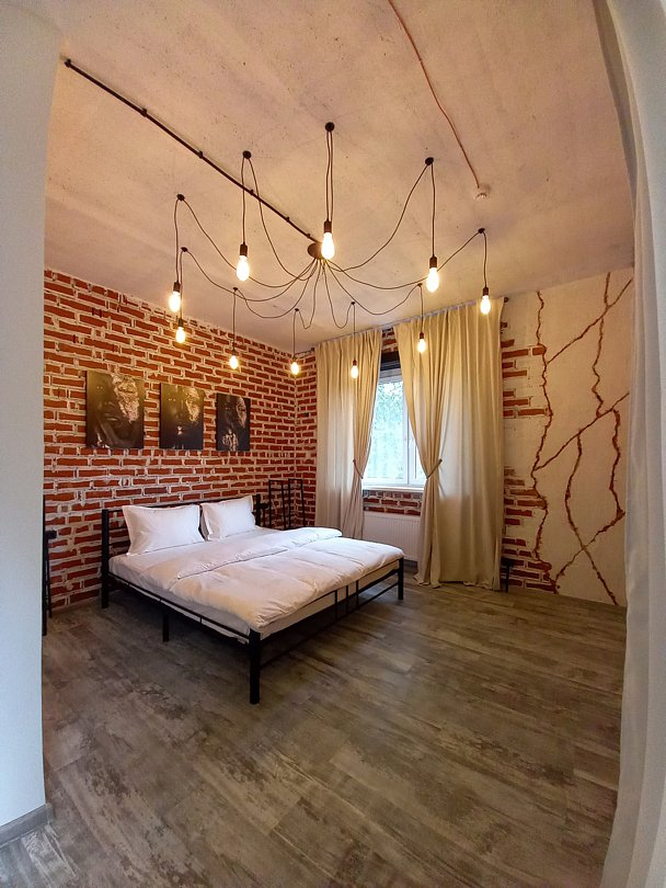 Апартаменты в гостевом доме рассчитаны на 4 человек. Есть все необходимые для комфортного пребывания : кухня-гостиная и спальня, ванная комната. Апартаменты оснащены двуспальной кроватью и угловым диваном , холодильником, микроволновой печью, посудой и столовыми приборами. Ванная комната оборудована душевой кабиной, санузлом и раковиной. В каждом номере имеется вентилятор.