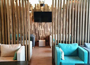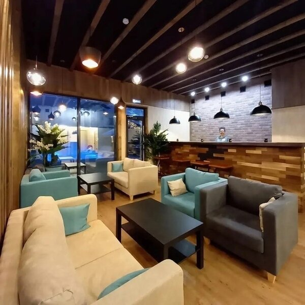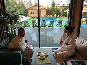 Комфортный зал отдыха в СПА-зоне, где можно отдохнуть после купания на мягком диване и выпить чашечку чая.