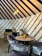- веранды освещены и оборудованы мягкими прозрачными окнами защищающими от ветра, уличными креслами и столиком.