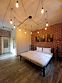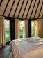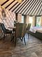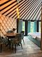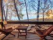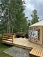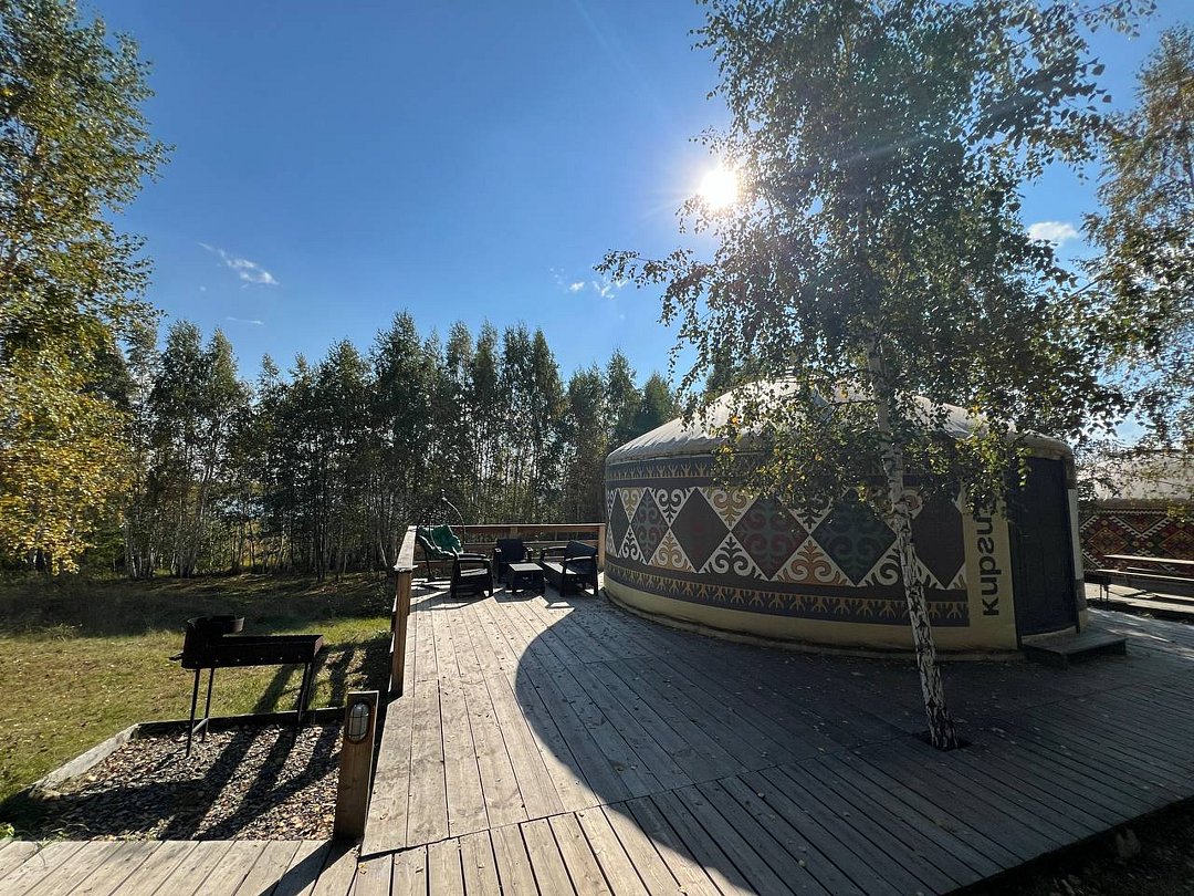 Колоритный дом (юрта) для семейного отдыха с видом на лес и озеро, с дачной мебелью из ротанга на террасе. Юрта состоит из одной комнаты-гостиной. В гостиной имеется двухуровневое спальное место: одна полноформатная двуспальная кровать, вторая двуспальная кровать расположена на втором уровне (дополнительное место). Размещение: 2-е взрослых + 2-е детей.