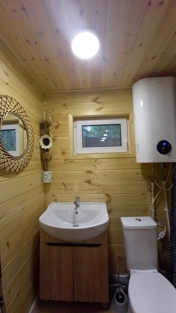 В доме: санитарный узел, мини кухня, двуспальная кровать, диван, микроволновая печь, холодильник, чайник, посуда, постельное белье, полотенца.