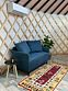 Колоритный дом (юрта) для семейного отдыха с видом на лес и озеро. Цвет интерьера – изумруд. Юрта состоит из одной комнаты-гостиной. В гостиной имеется двухуровневое спальное место: одна полноформатная двуспальная кровать, вторая двуспальная кровать расположена на втором уровне (дополнительное место). Размещение: 2-е взрослых + 2-е детей.