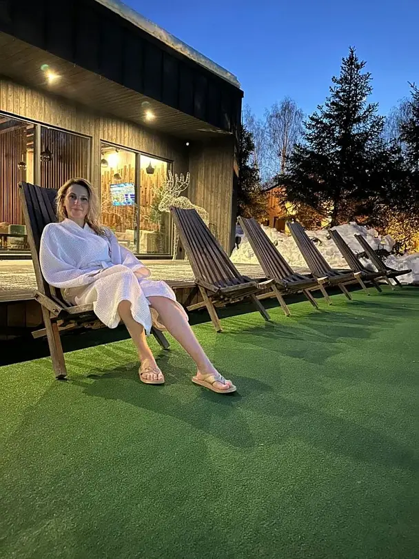 Инфраструктура: зона отдыха, полотенца, халатыЗдесь можно насладиться теплом деревянных стен, ароматом веников с великолепным панорамным видом.