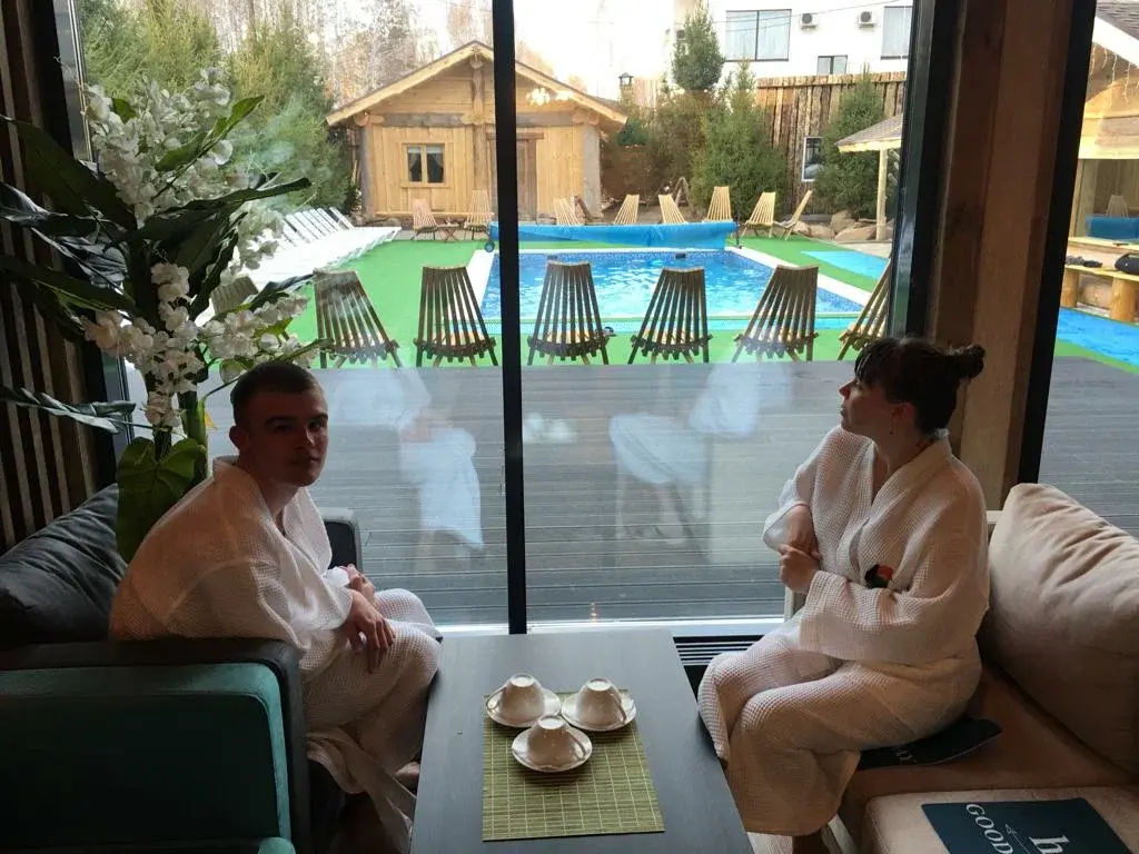 Есть спа, баня, открытый тёплый бассейн, на территории есть кафе- караоке, " Трапезная", это просто Шедевр!!! Сделано всё в стиле на Руси, русская печка с настоящими дровами, валенки, одежда, можно одевать и фотографироваться! А какой персонал, все доброжелательные, дружелюбные, отзывчивые люди!!! Рекомендую всем , кто ещё не побывал в этом сказочном месте обязательно приехать и отдохнуть душой и телом!!!!!НедостаткиНе указаны