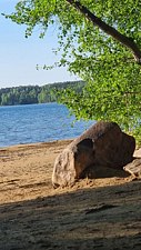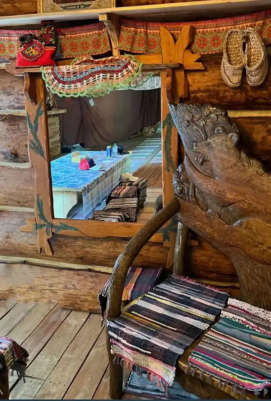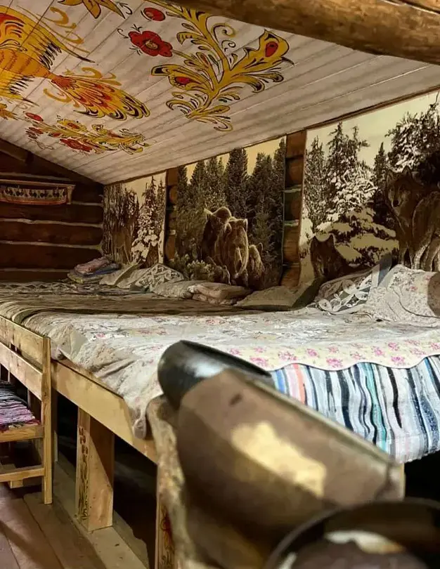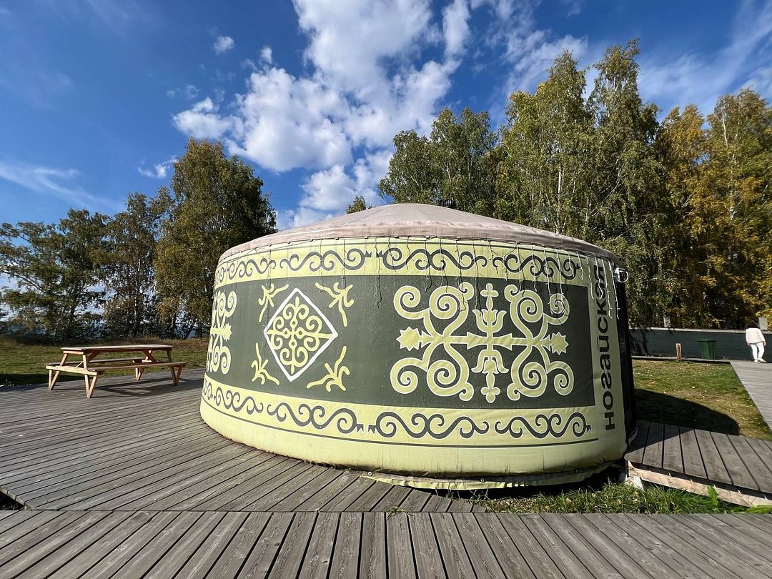 Колоритный дом (юрта) для семейного отдыха с видом на лес и озеро. Акцент в интерьере - красный. Юрта состоит из одной комнаты-гостиной. В гостиной имеется двухуровневое спальное место: одна полноформатная двуспальная кровать, вторая двуспальная кровать расположена на втором уровне (дополнительное место). Размещение: 2-е взрослых + 2-е детей.