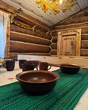 Две площадки для проведения мероприятий. Русская трапезная — уютное место для вкусных обедов и ужинов, где вся еда готовится в русской печи по старинным рецептам.