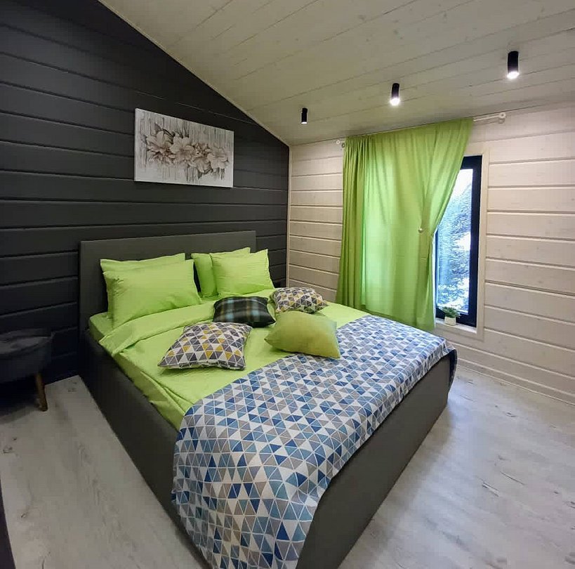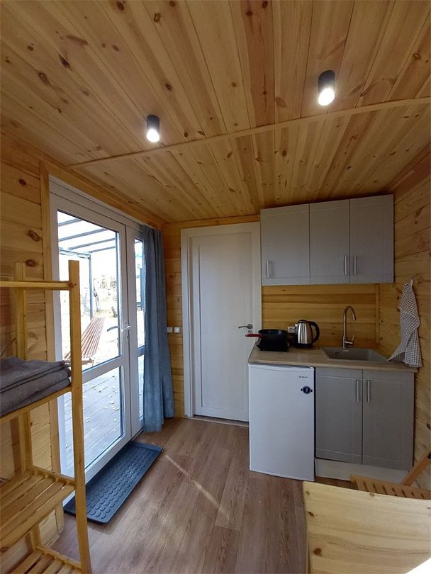 Это уютный двухместный домик, рассчитанный на комфортное размещение двух гостей.