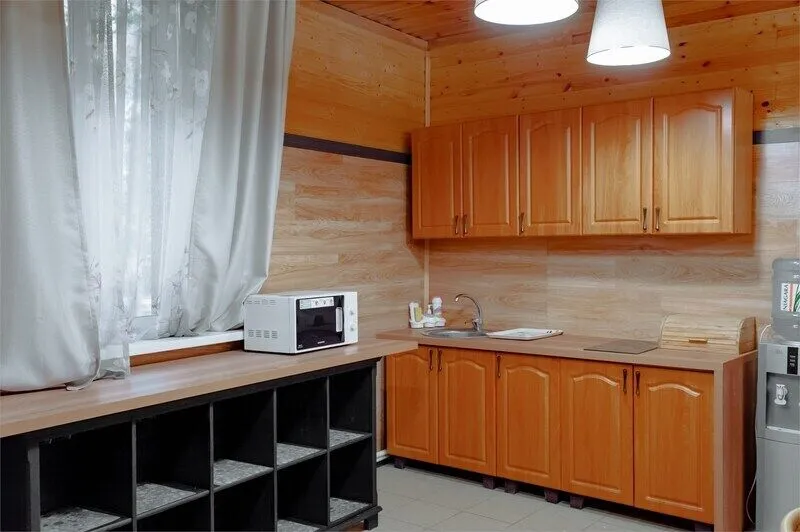 Кулер на этаже, мансардные окна, информационная карта, меню.