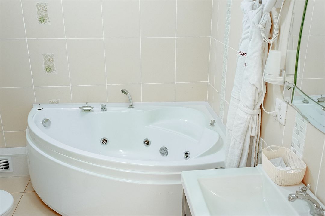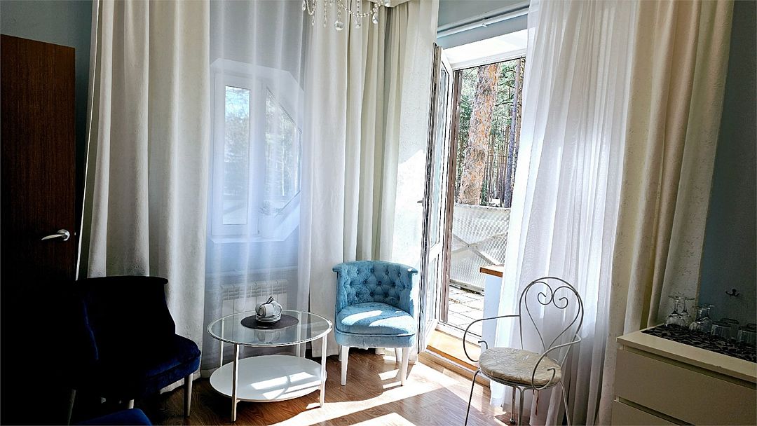 Главный принцип этого номера – обеспечить комфорт ценителям загородного отдыха. Просторный теплый номер, интерьер которого выполнен в классическом стиле с использованием спокойных пастельных тонов.