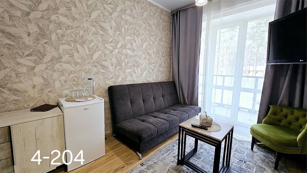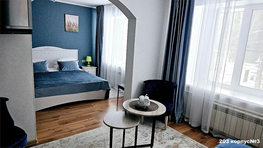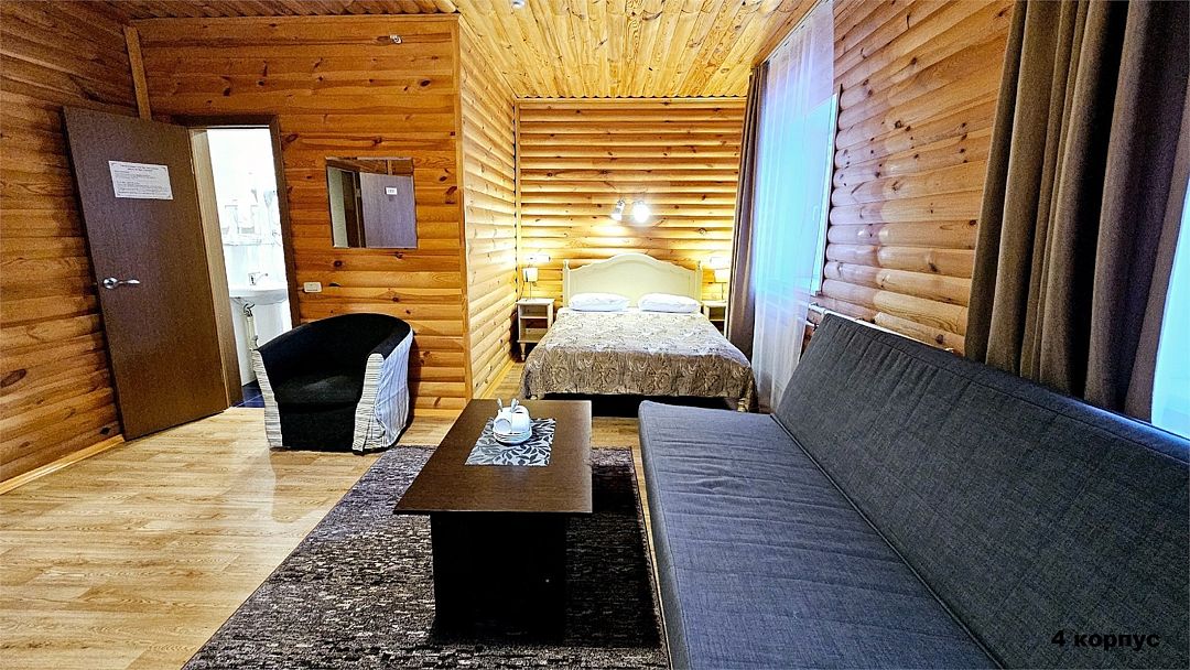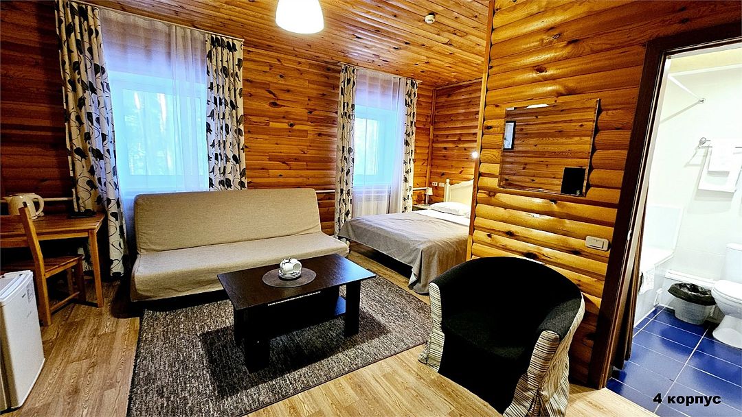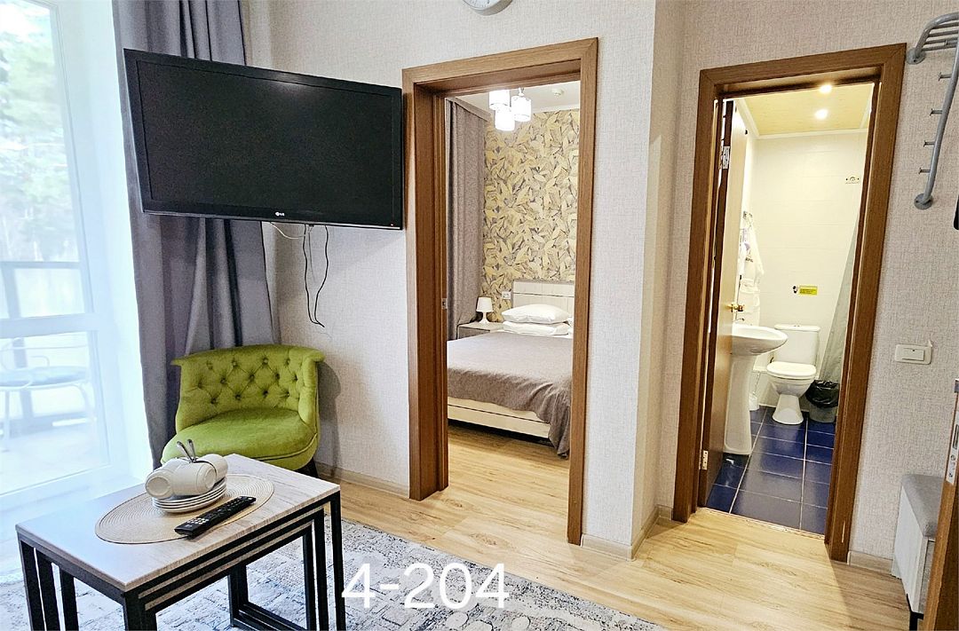 На Ваш выбор: просторная спальня + уютная гостиная с аркой или дверью. Гармоничное сочетание дизайнерских решений со стандартами комфорта и техническим оснащением номера сделает Ваш отдых не только максимально удобным, но и подарит самые теплые воспоминания о проведенных днях на базе отдыха.