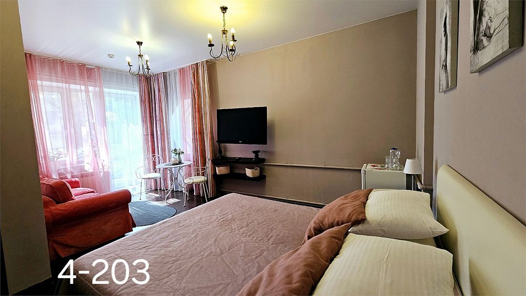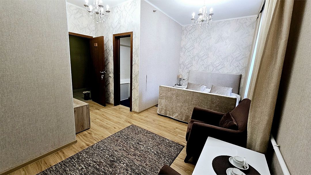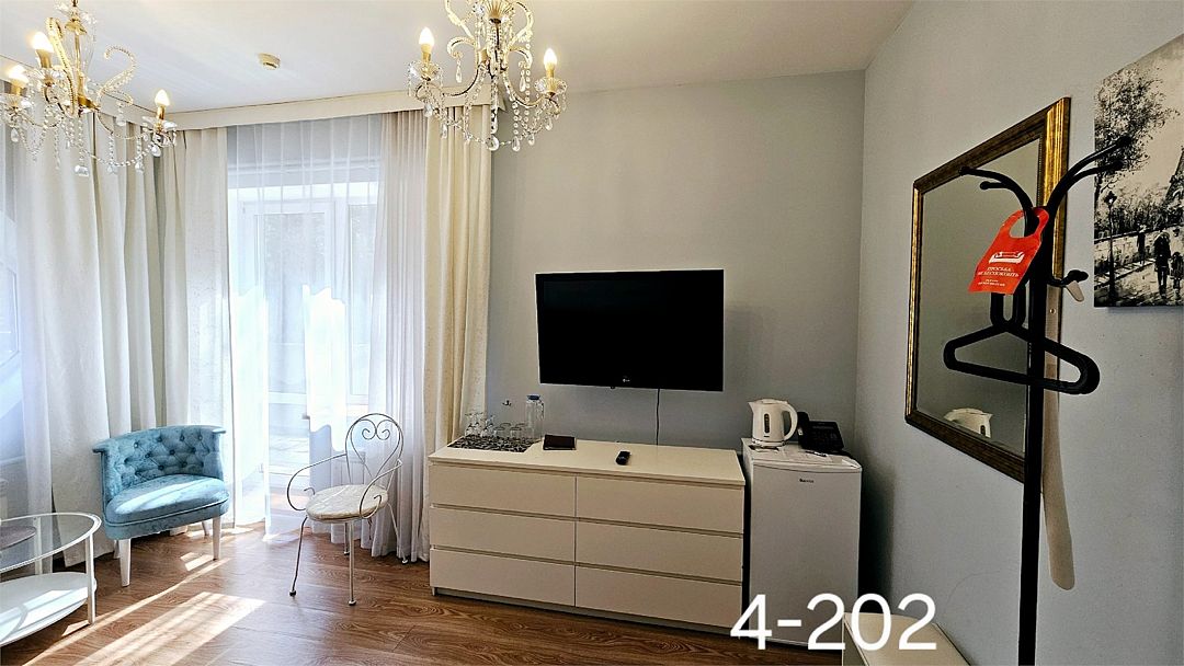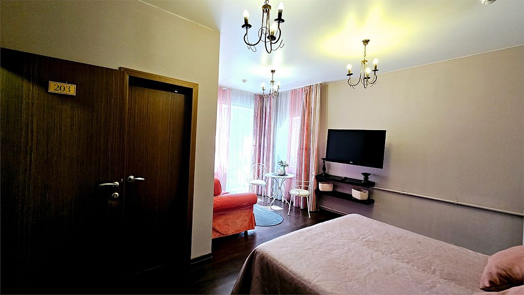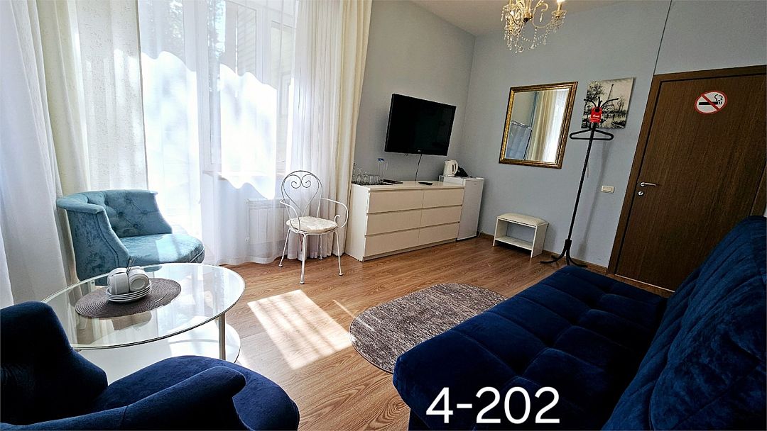 На Ваш выбор: номер–студия; гостиная зона + спальня с межкомнатной аркой или с дверью. Спокойные цвета, приятные ткани, белоснежное постельное белье и продуманный до мелочей интерьер поразят ненавязчивостью стиля, тонкостью вкуса и оставят впечатления, благодаря которым Вы непременно захотите вернуться вновь.
