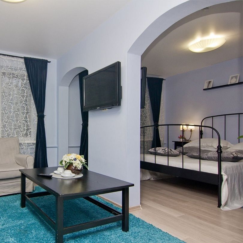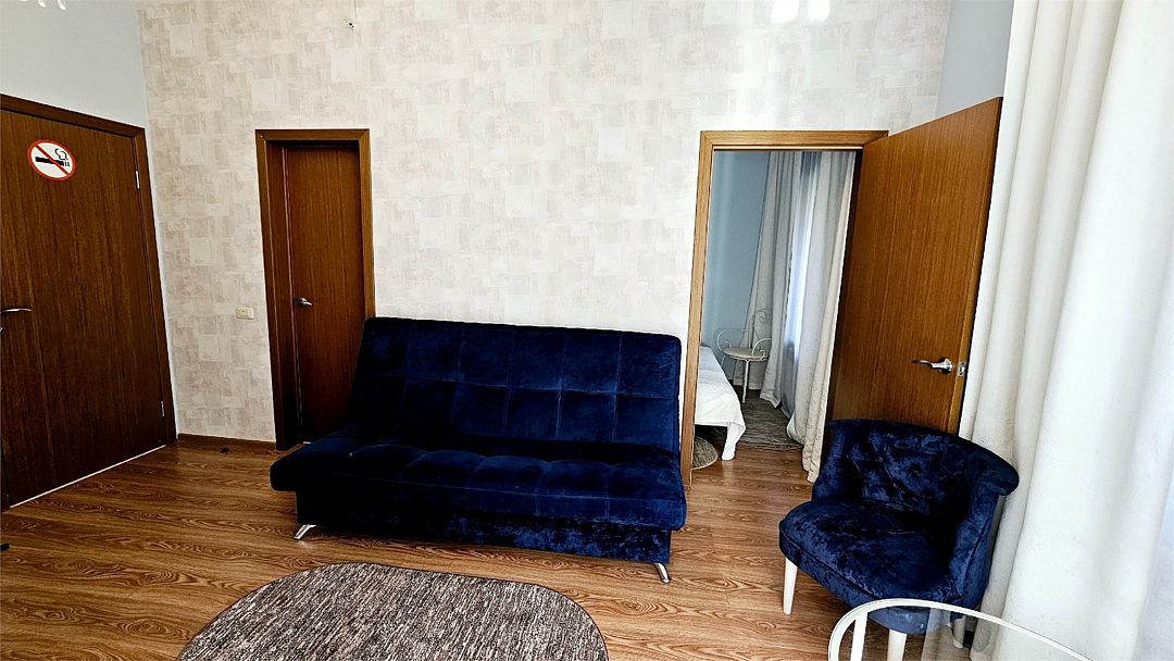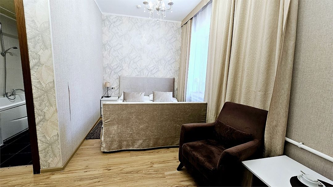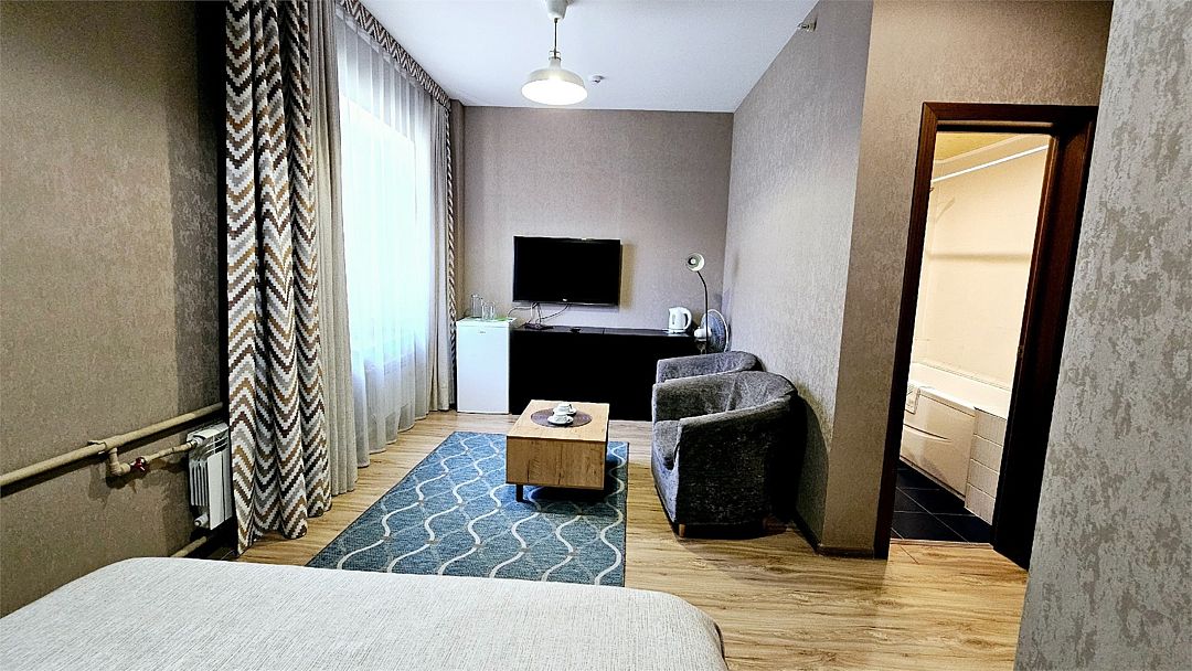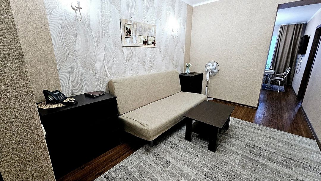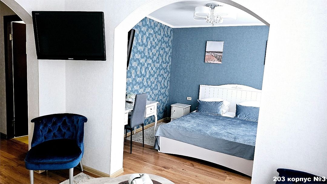 На Ваш выбор: номер–студия; гостиная зона + спальня с межкомнатной аркой или с дверью. Спокойные цвета, приятные ткани, белоснежное постельное белье и продуманный до мелочей интерьер поразят ненавязчивостью стиля, тонкостью вкуса и оставят впечатления, благодаря которым Вы непременно захотите вернуться вновь.