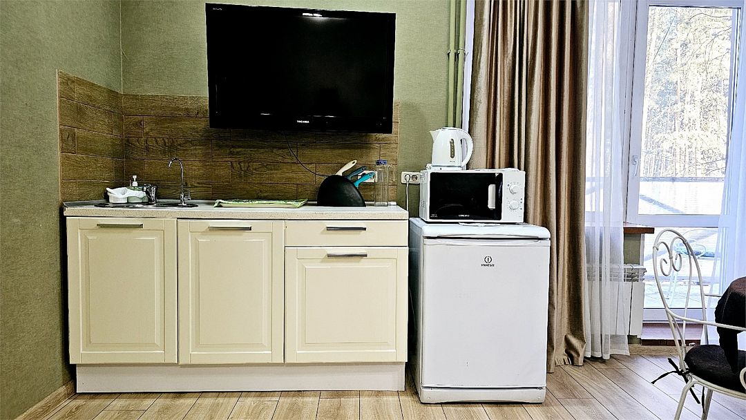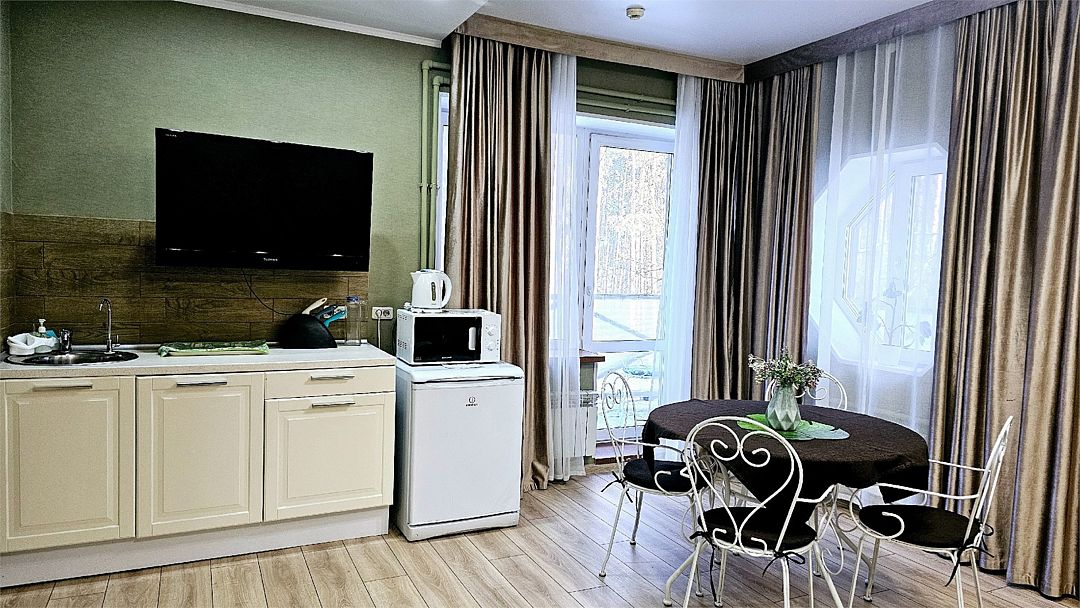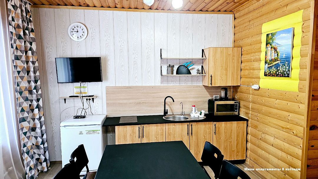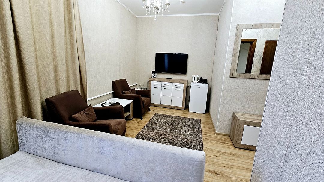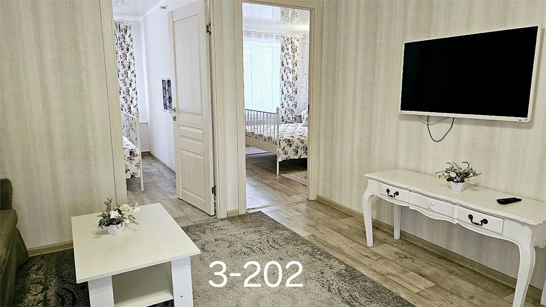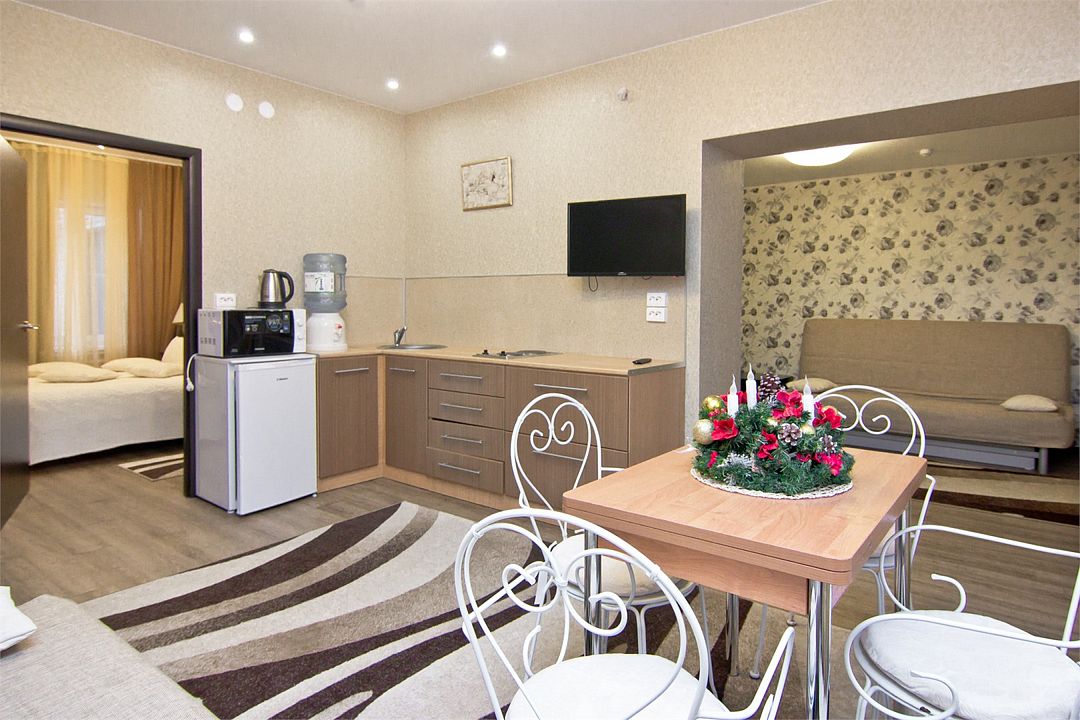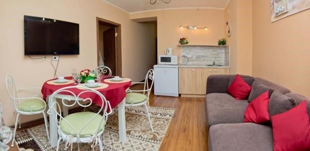 Мини апартаменты будут лучшим выбором для отдыха дружной семьей или небольшой компанией. Две спальни и гостиная с двуспальным диваном и кухней, оборудованной всем необходимым, включая посуду, обеспечит комфортное пребывание и по-настоящему домашний уют на протяжении всего Вашего отдыха.