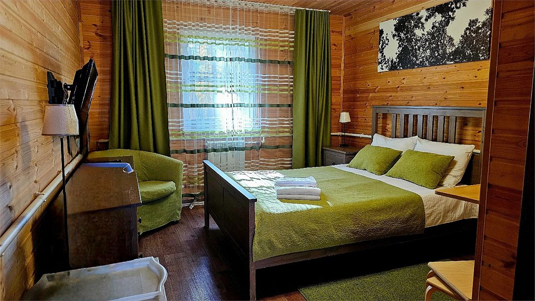 Эти номера идеально подходят для загородного отдыха всей семьей. Достаточно большая площадь номера.