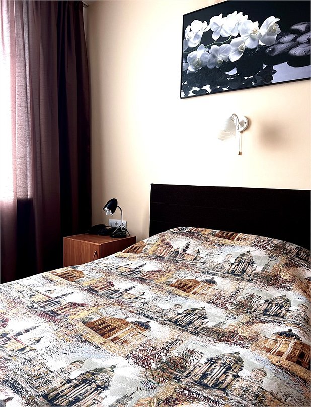 Одноместный однокомнатный номер, площадью 14,6 м2 с полутороспальной кроватью, позволит Вам уединиться и отдохнуть от повседневной суеты.Услуги и удобства