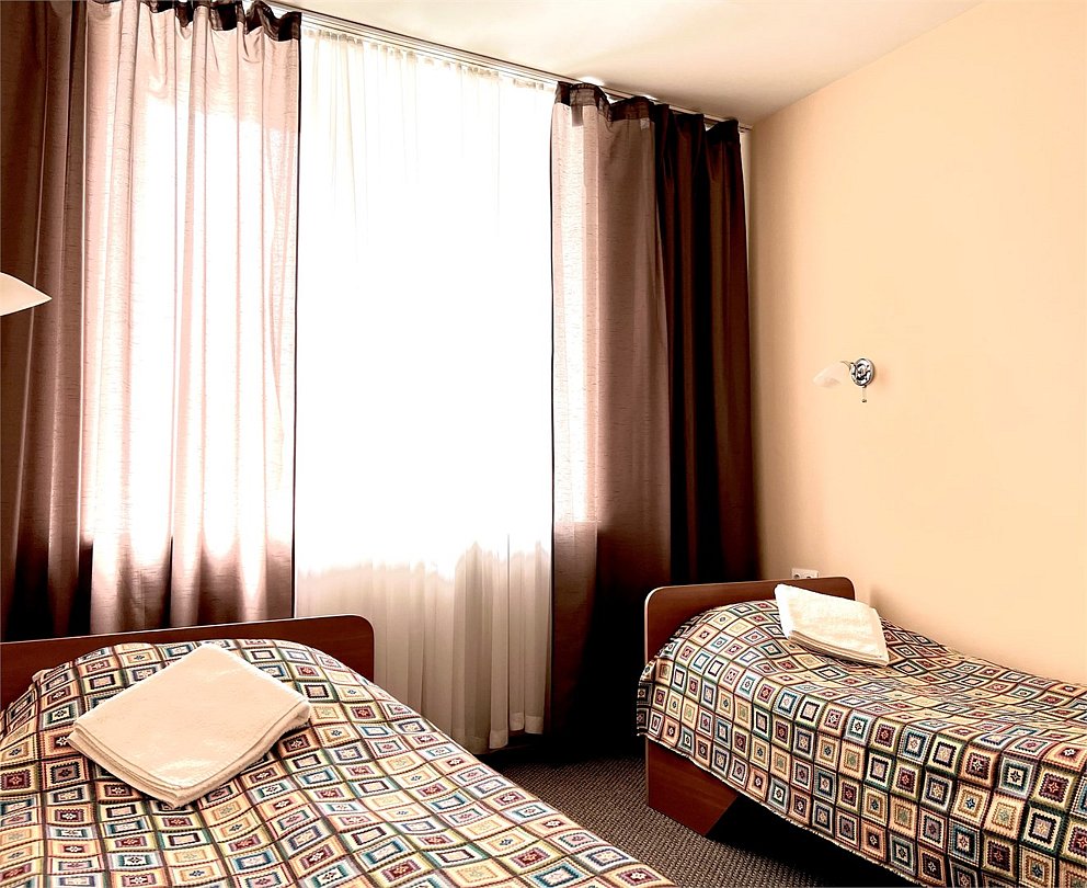 Двухкомнатный просторный номер с двумя односпальными кроватями, В сочетании "цена-качество" привлекает разнообразные категорий гостей. Оснащен всем необходимым для комфортного отдыха. При проживании третьего человека стоимость дополнительного места 850 руб.Услуги и удобства