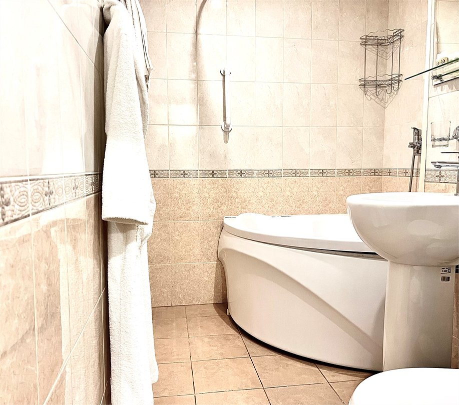 два телевизора, кабельное телевидение, Wi-Fi, телефон, кондиционер, светильник, настольные лампы, фен, ванна, халаты, банные полотенца, тапочки, косметические средства, двуспальная кровать, шкаф для одежды, гардеробная, вешалки, журнальный столик, багажная тумба, зеркало, две комнаты, унитаз, косметическое зеркало, кулер на этаже, кресло, общая ванная комната, стаканы, стул, туалетные средства, диван-кровать, раскладной диван, мини-холодильник, гостиничная парфюмерия, рабочий стол, гигиенический душ, чайная станцияВ номере