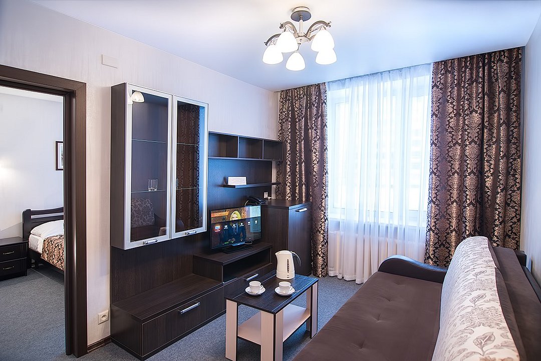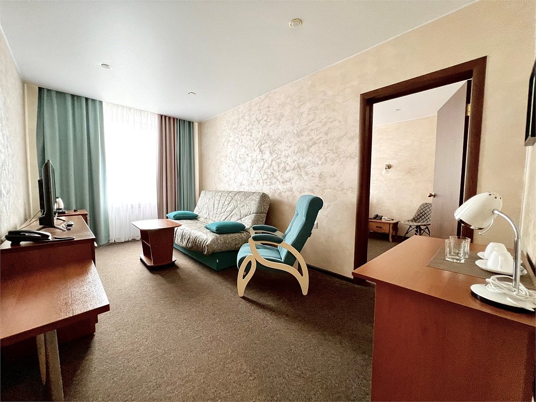Двухкомнатный номер повышенной комфортности, оснащенный современной удобной мебелью и стильным дизайном. Двуспальная кровать для отдыха позволит полностью расслабиться и восстановиться после напряженного дня. В каждой комнате есть телевизор (37 каналов).Услуги и удобства