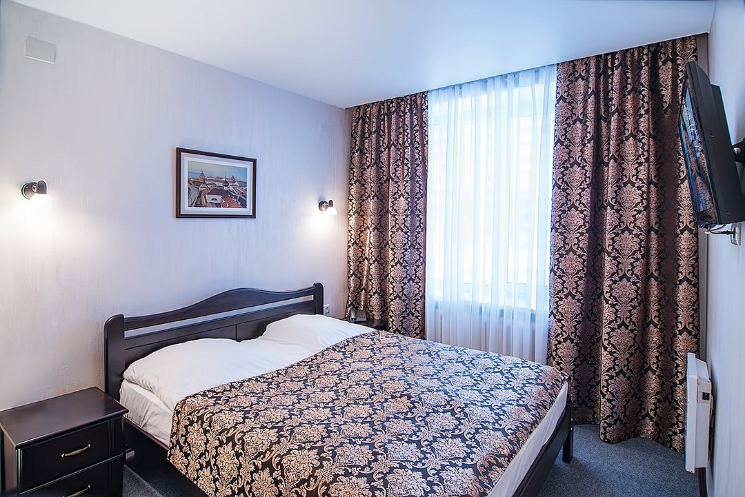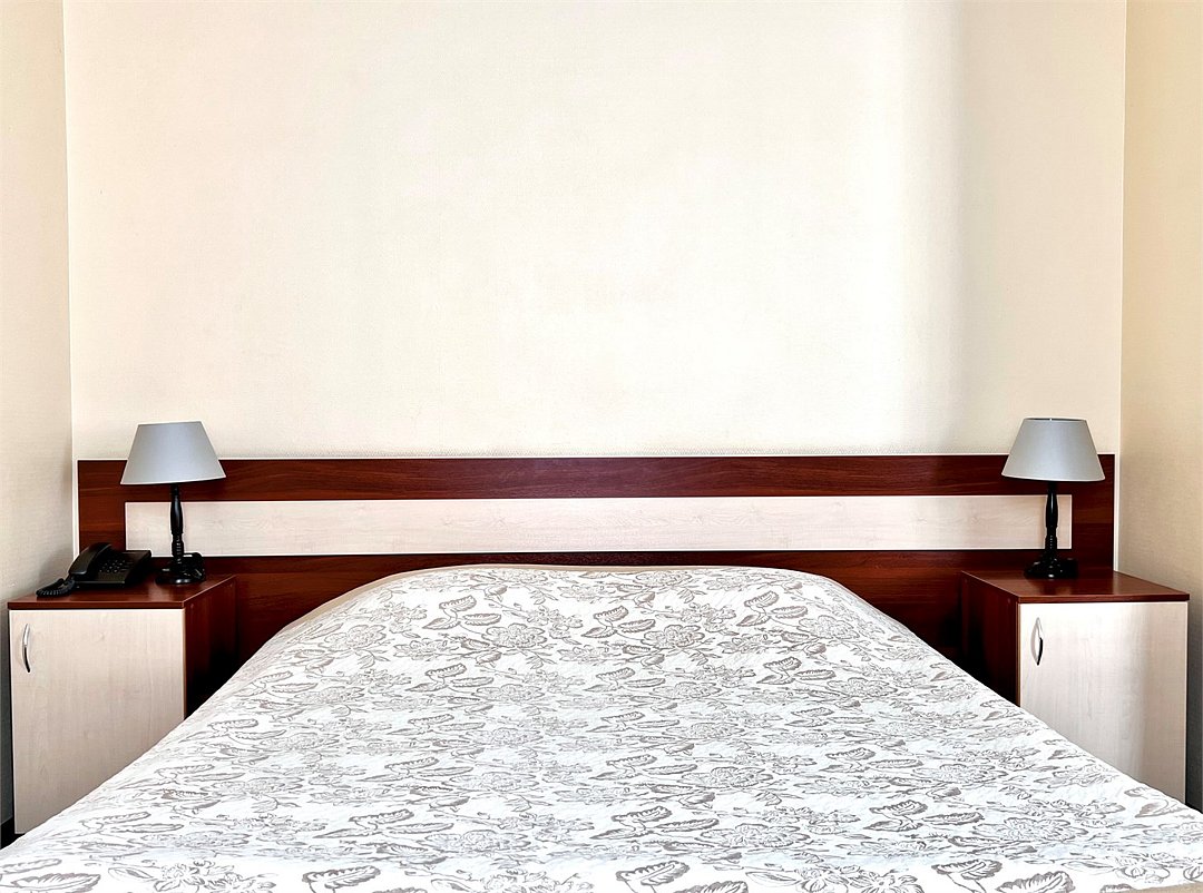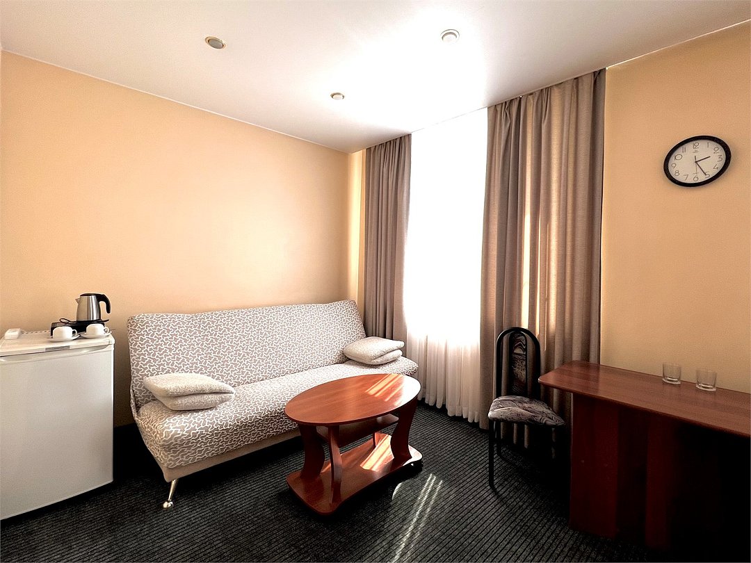 Однокомнатный просторный номер, в котором расположено несколько спальных мест: двуспальная кровать и удобный диван. В данном номере будет удобно расположиться любой категории гостей: от путешественников до деловых людей.Услуги и удобства