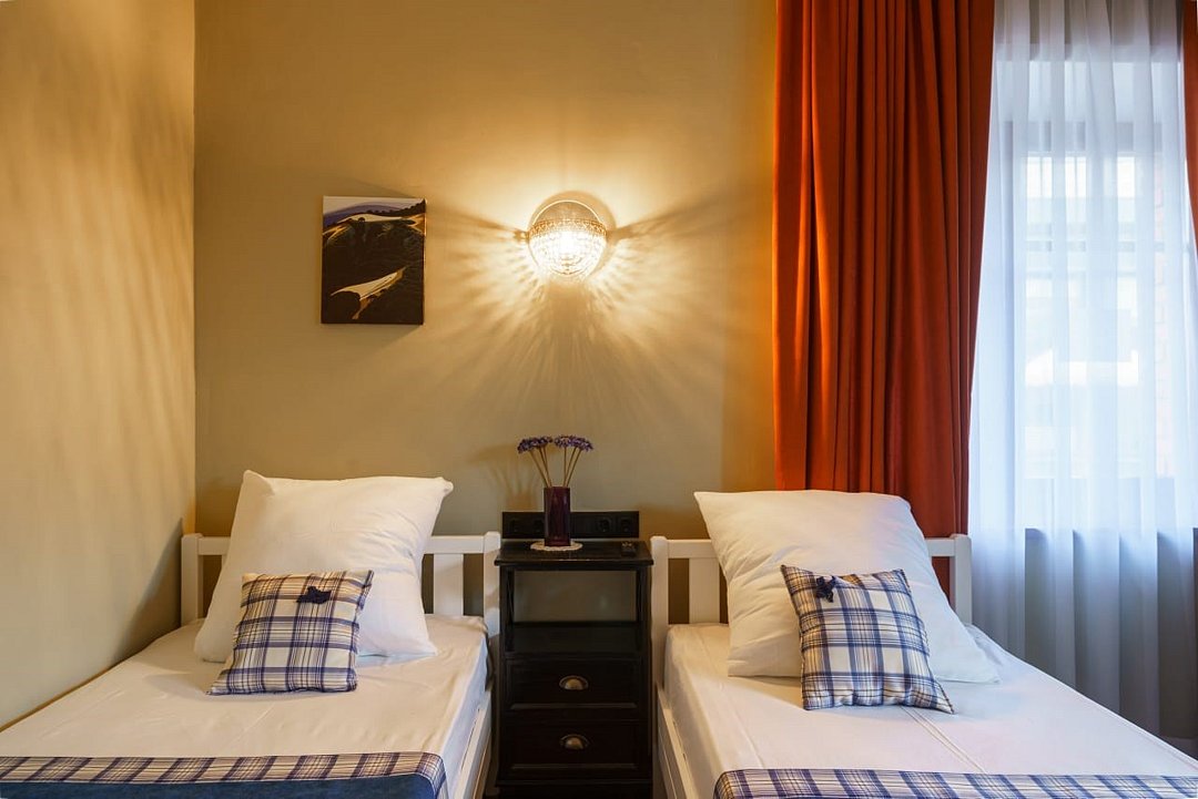Номер с двух спальной кроватью отлично подойдет как для семейной пары, так и для одного человека, или двух гостей, кровати можно раздвинуть.Услуги и удобства