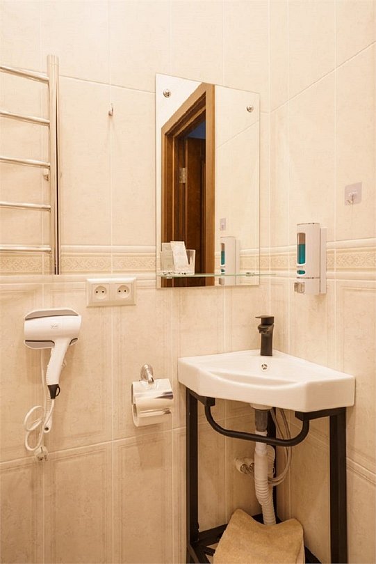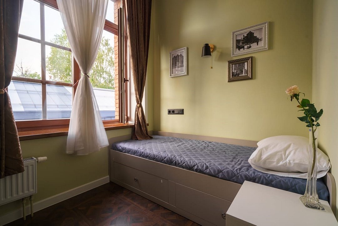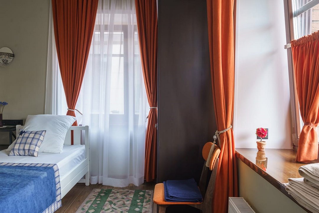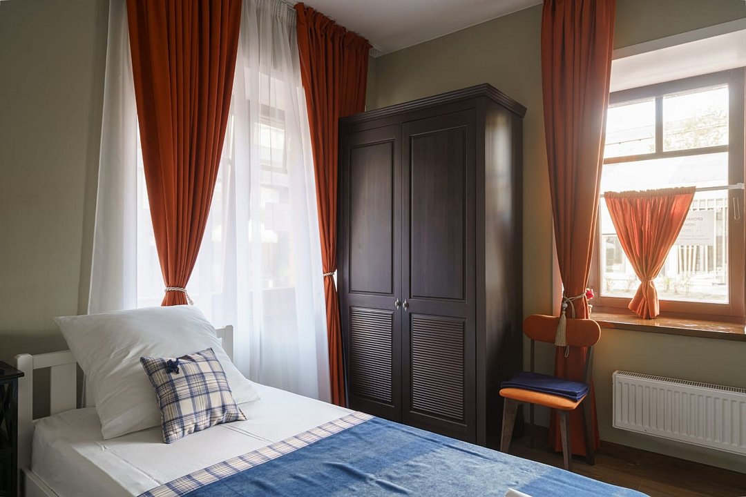 Wi-Fi, интернет, электронные замки, душевая кабина, односпальная кровать, унитаз, раковина, вид во двор, стул, гостиничная парфюмерия, рабочий стол, уборка номера, мыло, зеркало в полный рост, вид на достопримечательностьВ номере