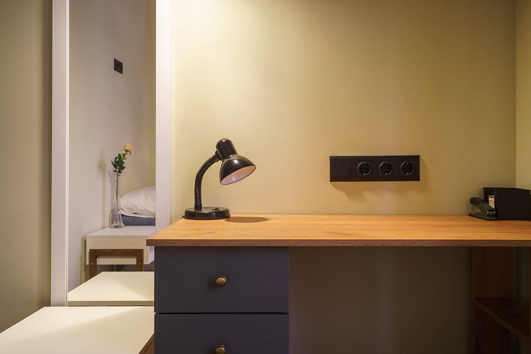 Имеет рабочий стол, кровать длиной 200 смУслуги и удобства