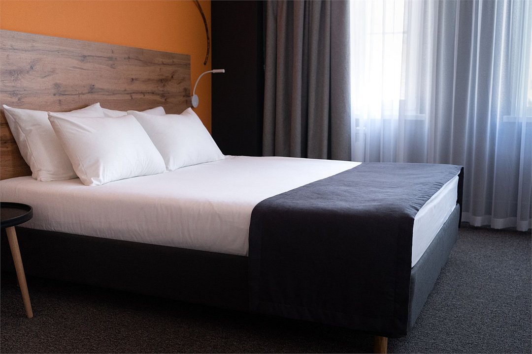 На данный момент в отеле доступны для бронирования три категории номеров «Стандарт Одноместный”, “Стандарт Двухместный” и «Полулюкс Комфорт»