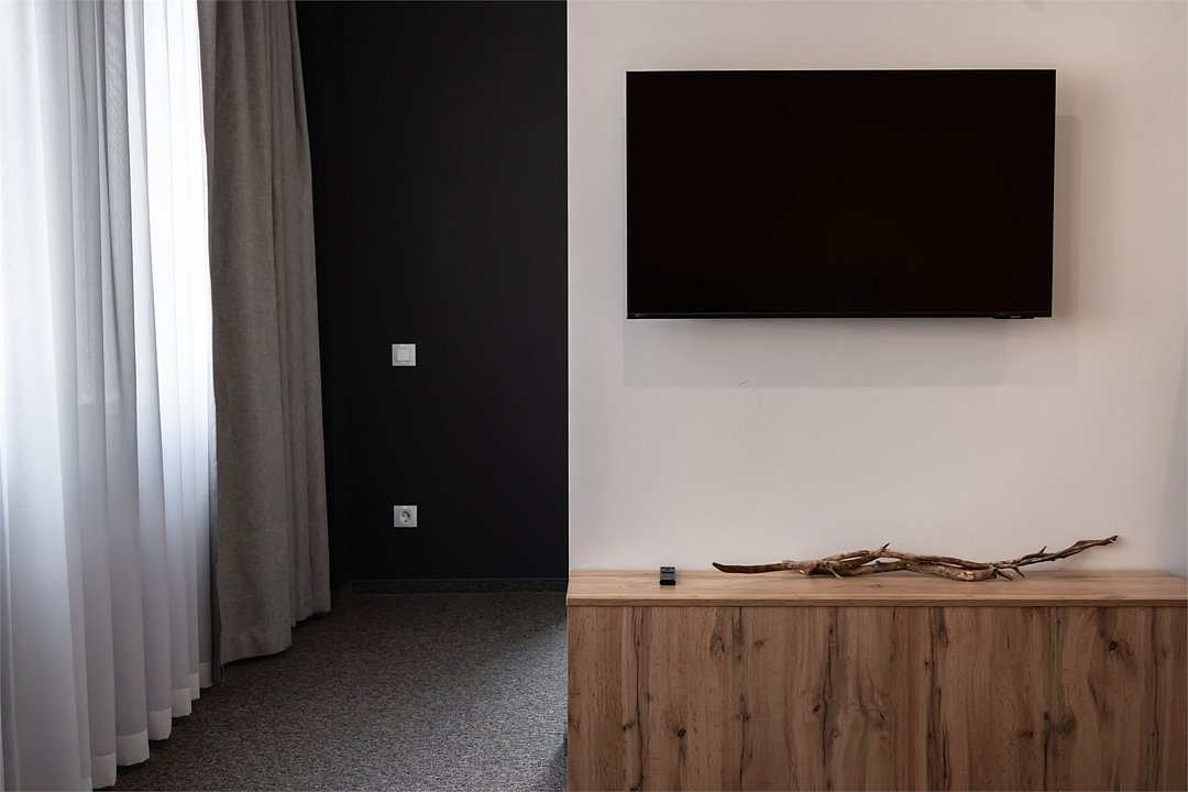 Wi-Fi, кондиционер, фен, электронные замки, утюг, душевая кабина, теплый пол, халаты, тапочки, гигиенические средства, косметические средства, балкон, двуспальная кровать, гладильная доска, диван, тумбы, шкаф для одежды, вешалки, журнальный столик, зеркало, пуфики, мини-бар, чайный набор, обслуживание номеров, сейф, чайник, мягкая мебель, ковровое покрытие, отопление, душ, кресло, вид во двор, стаканы, стул, туалетные средства, туалет, цифровое тв, диван-кровать, внутренний телефон, мини-холодильник, москитная сетка, телевизор со Smart TV, теплые полы, номер для некурящих, рабочий стол, чайная станция, уборка номера, набор для приготовления чая и кофе, услуги прачечной (платно), вешалки-плечики, бутилированная вода, можно с питомцамиВ гостиничном номере