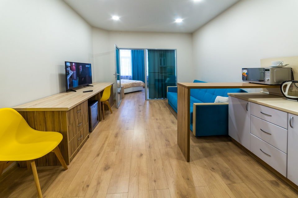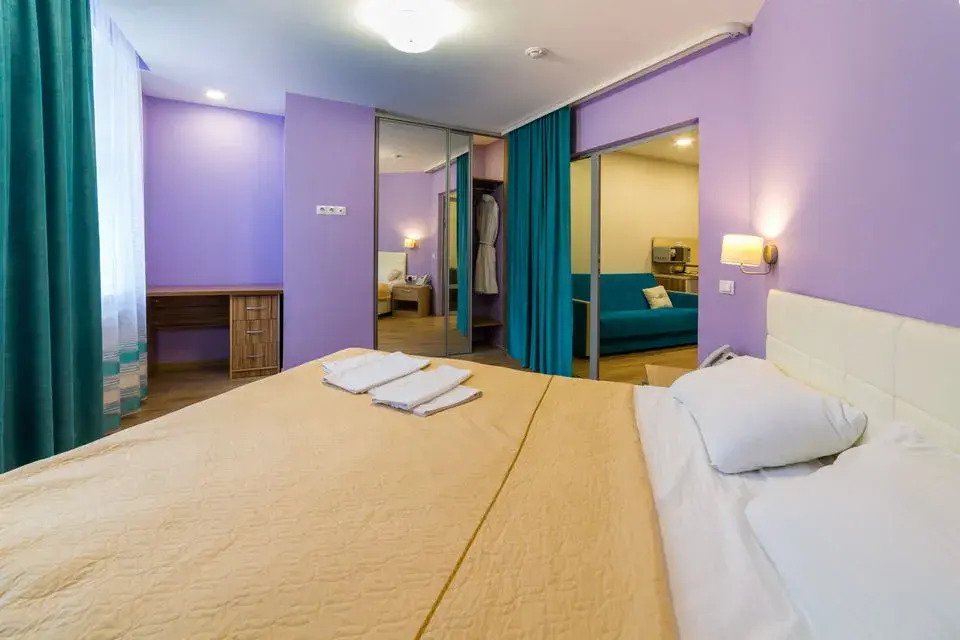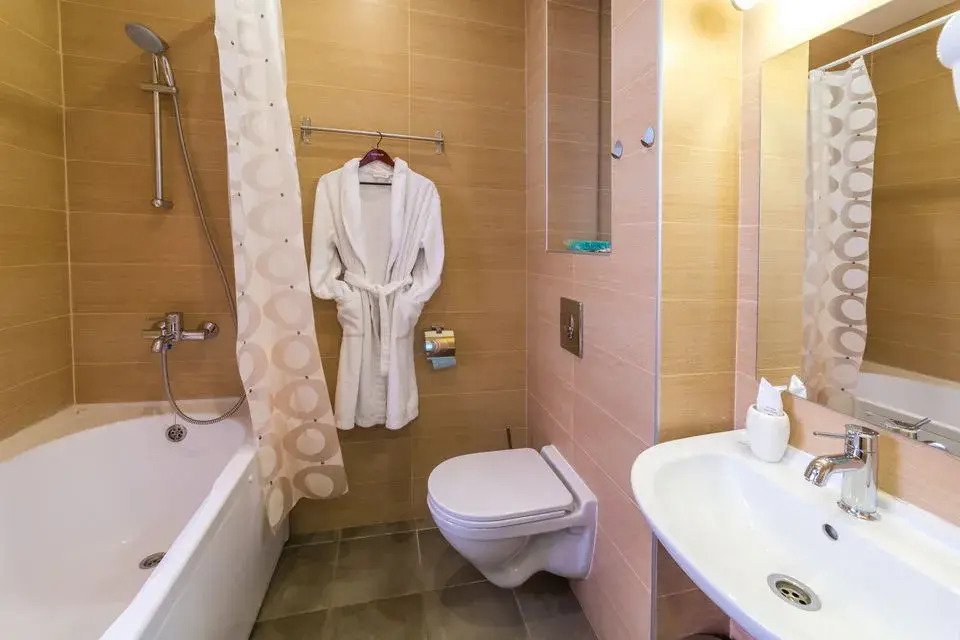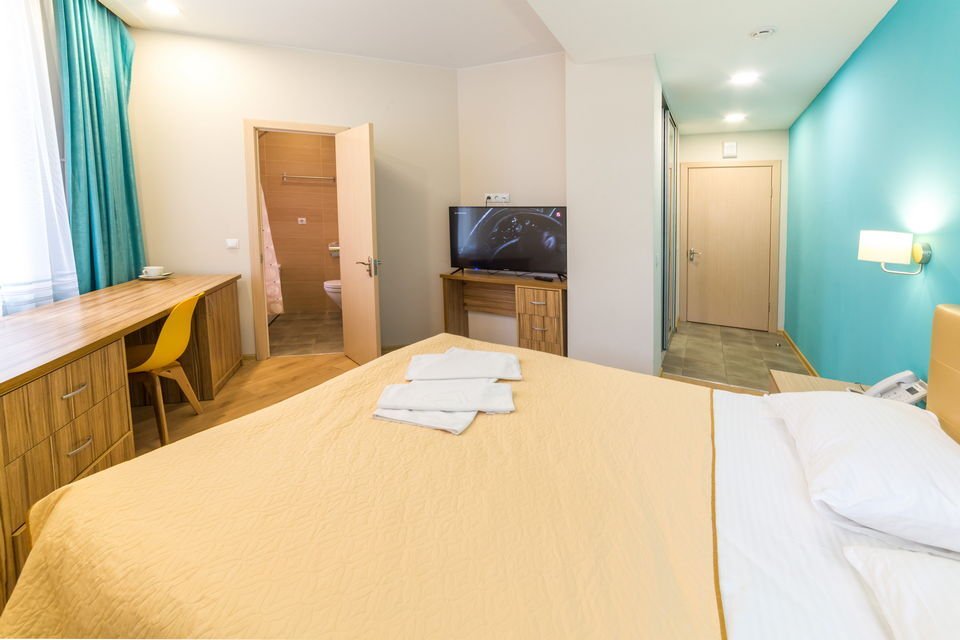 Чтобы вы могли отдохнуть после долгого дня, в номере есть телевизор и халат. Оснащение зависит от выбранной категории номера.