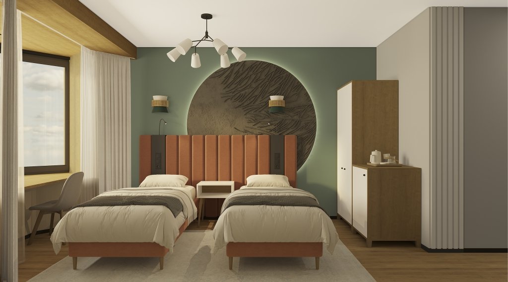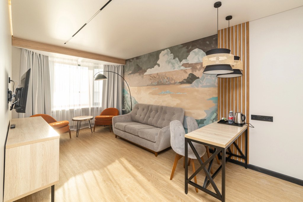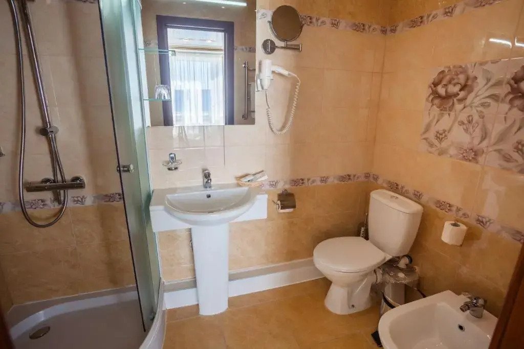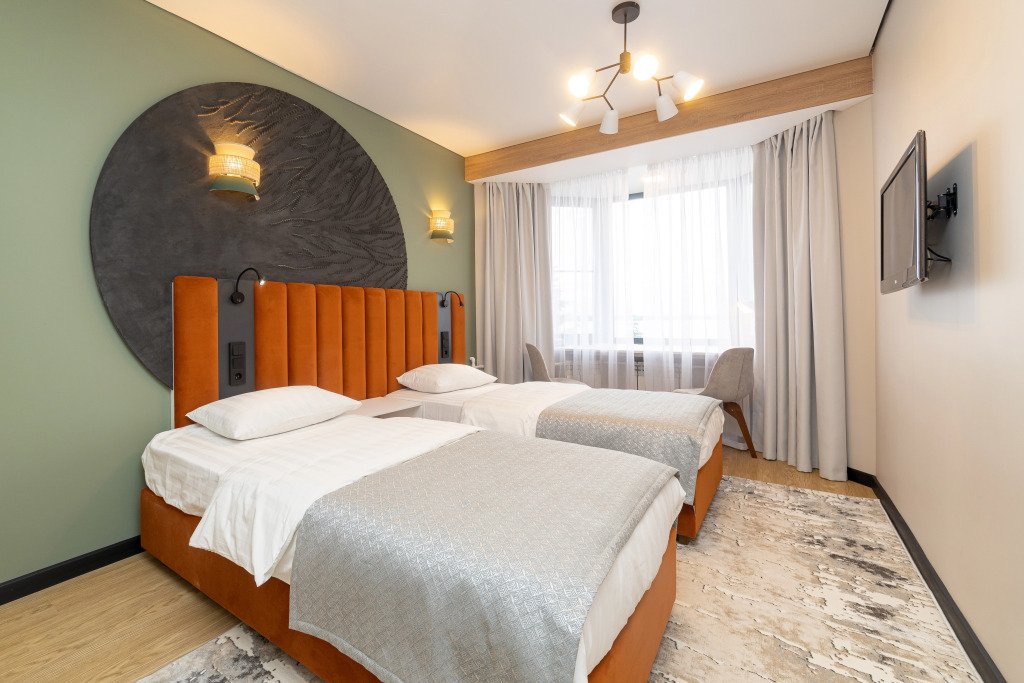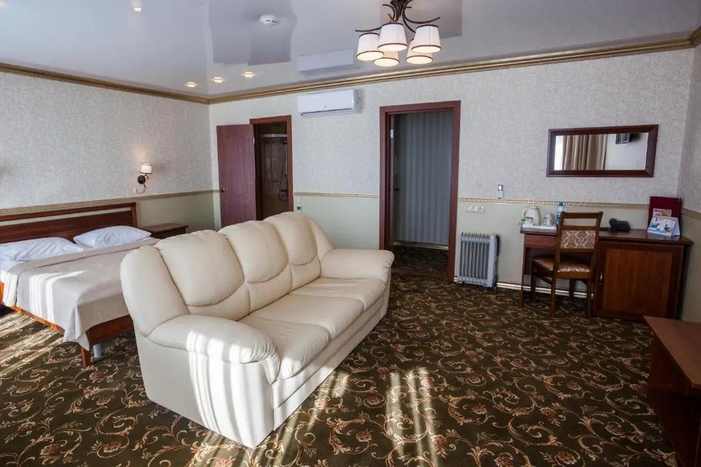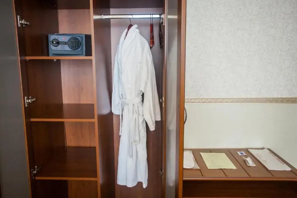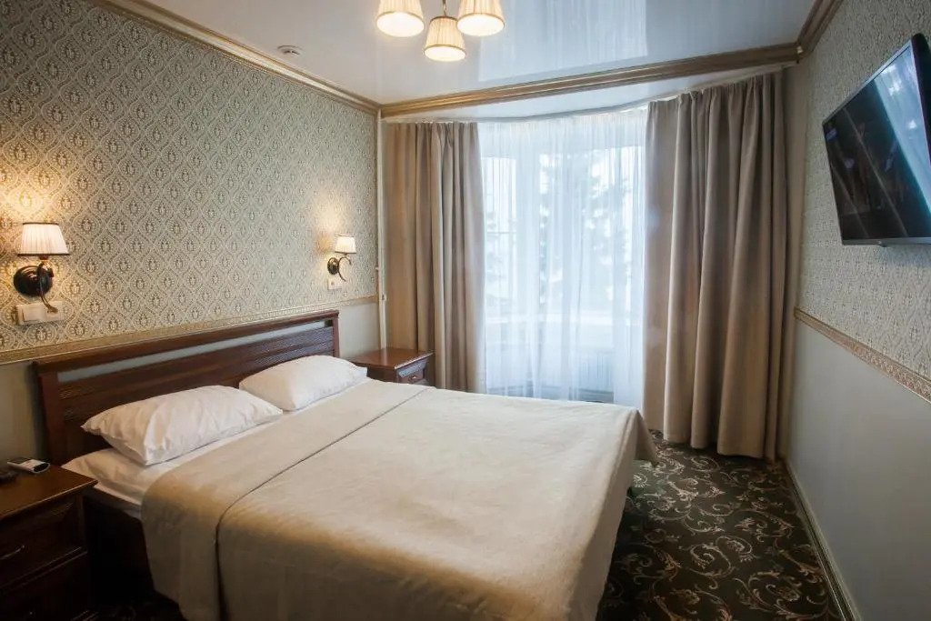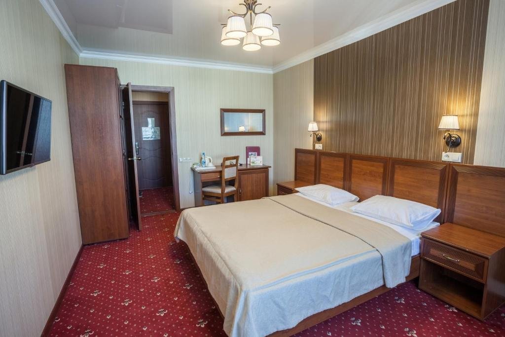 Номер уютно обставлен и оснащён необходимым, чтобы отдохнуть после долгого и насыщенного дня. Имеются телевизор и халат. Перечисленные услуги есть не во всех номерах.