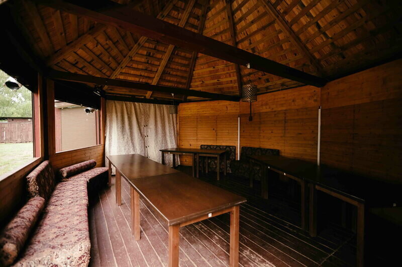 Особая изюминка базы — возможность аренды уютных беседок с мангалами, где вы можете собраться с друзьями или семьей, чтобы приготовить аппетитные блюда на открытом огне. Для больших компаний предлагается аренда большого шатра, который состоит из трех отдельных секций до 30 человек каждая, либо сдается целиком для мероприятий до 100 человек.