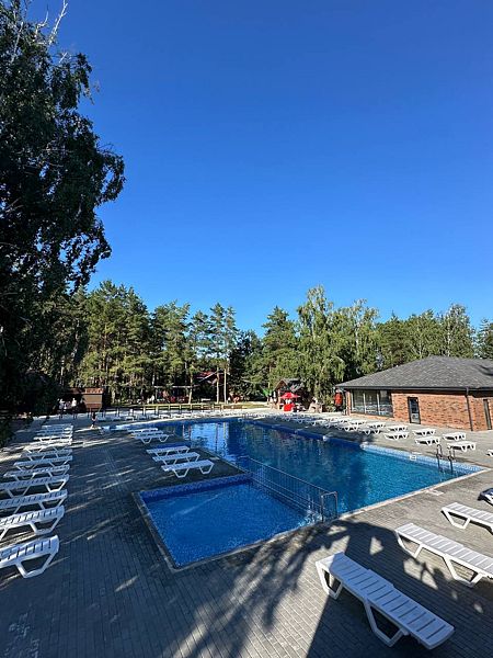 Современный бассейн с подогревом — идеальное место для летнего отдыха, удобные лежаки по периметру создают атмосферу уюта. Пребывание на территории бассейна с контрольными браслетами обязательно как для взрослых, так и для детей. Обратите внимание, что график работы может изменяться в зависимости от погоды.