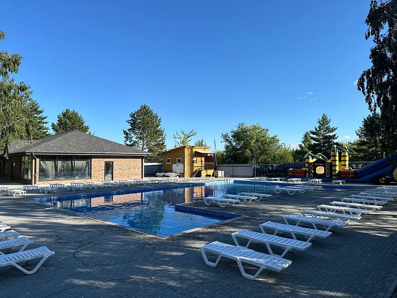Для активного отдыха на территории работает открытый подогреваемый бассейн, детская площадка с песочницей, качелями и игровым комплексом. В летнем кафе вас ждут вкусные блюда на любой вкус, в том числе специальное детское меню. А для полноценного расслабления к вашим услугам банный комплекс с парной, гидромассажной ванной и тропическим душем.
