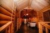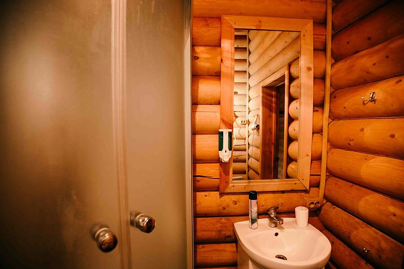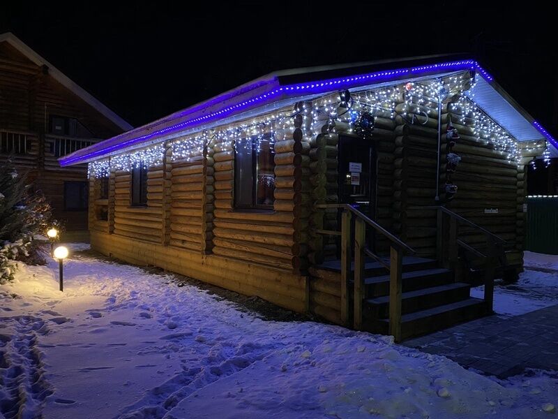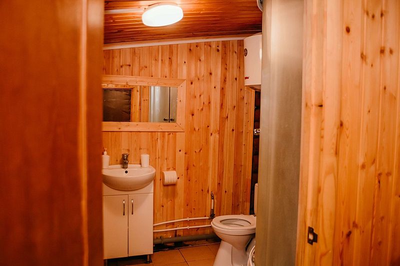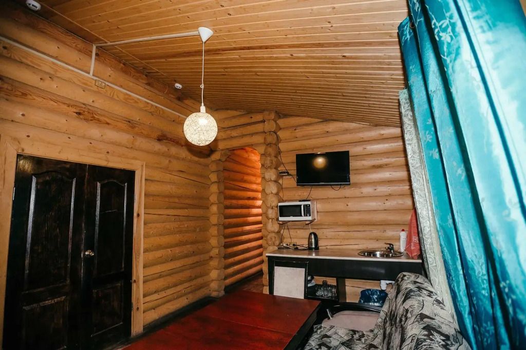 Двухместный домик. Отличный вариант прекрасно провести выходные. Дом хорошо отапливается. Внутри дома: большая двуспальная кровать, телевизор, холодильник, микроволновая печь, санузел, душевая кабина.