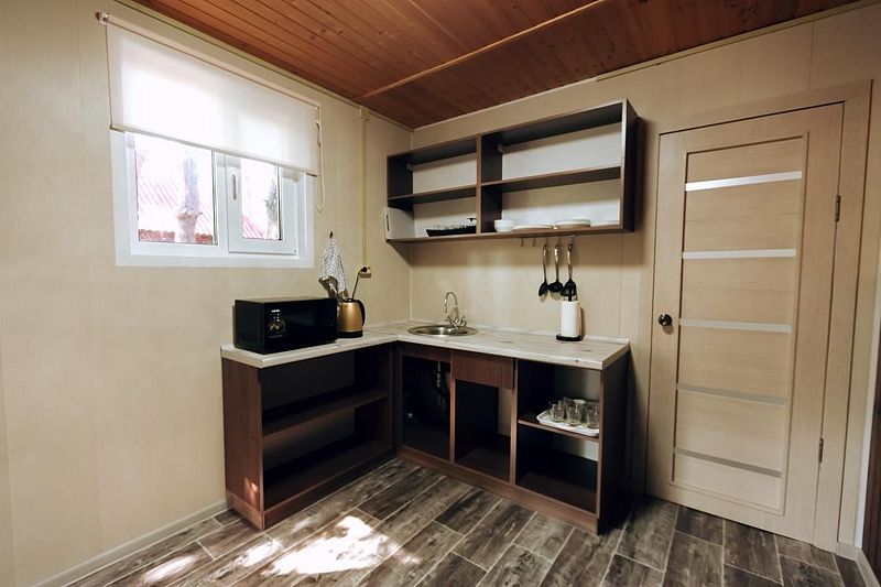 Двухкомнатный номер в гостинице, рассчитанный на 2-4 человека. В номере: спальня с двуспальной кроватью, гостиная с телевизором, санузел (душевая кабина, раковина, туалет), холодильник, общая кухня, гостиная, большая веранда с мангалами.