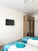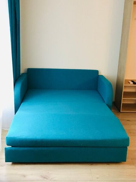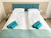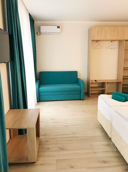 Кровать двуспальная или две односпальные, кресло-кровать, тумбочки прикроватные, шкаф, холодильник, кондиционер, телевизор, санузел (душ+туалет), гигиенический принадлежности