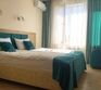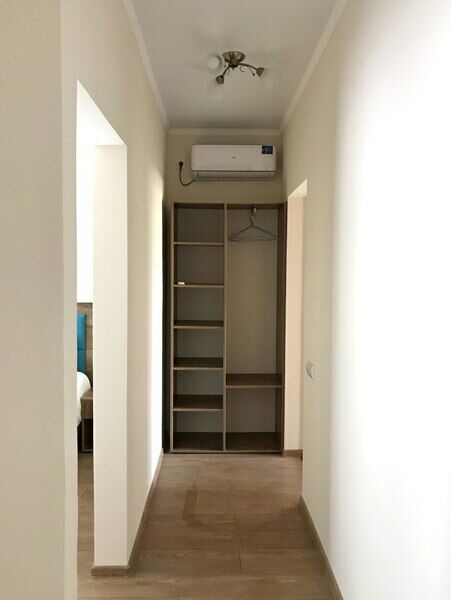 Кровать двуспальная, две детские кровати (80*165), тумбочки прикроватные, шкаф, холодильник, кондиционер, телевизор, санузел (душ+туалет), туалетные принадлежности