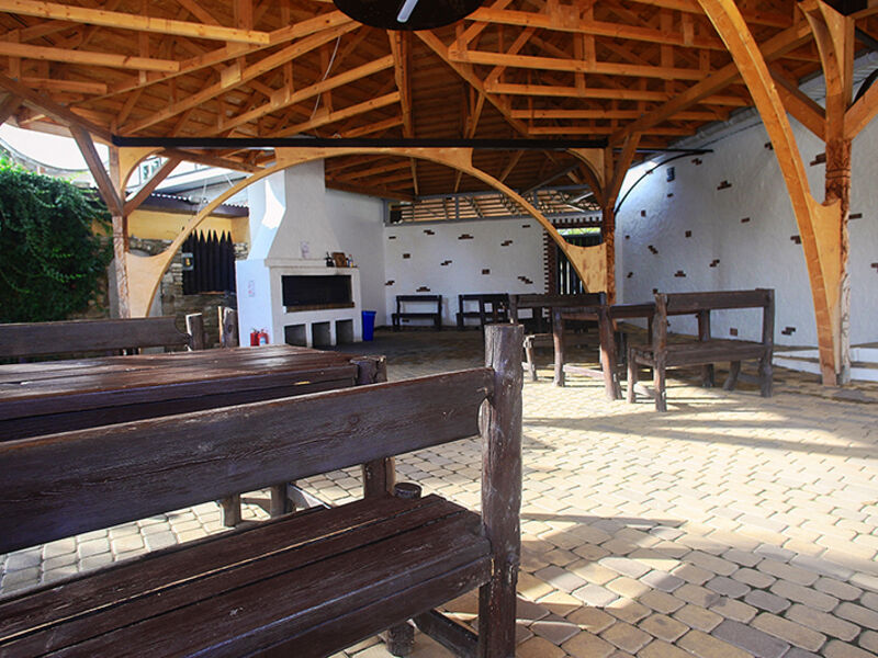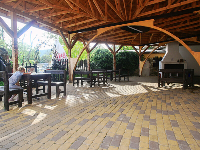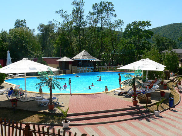 К услугам гостей - большой открытый бассейн с пресной водой с детским отделением, во дворе оборудована игровая площадка с песочницей и игровым комплексом, в прокат можно взять детскую кроватку. На территории работает столовая, есть зона барбекю и общая кухня. Для автовладельцев организована парковка.