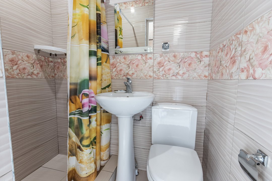 В номере: Две двуспальные кровати, односпальная софа, зеркало, пуфик, шкаф, тумбочки, ТВ, кондиционер, холодильник, чайник с мелкой посудой, микроволновка, совмещенный душ, туалет, полотенца все кроме пляжных, постельное белье, фен. Окна выходят во внутренний двор. Уборка 1 раз в 3 дня. Смена полотенец 1 раз в 3 дня. Смена постельного белья 1 раз в 5 дней.