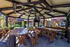 На территории базы отдыха вас ждет просторная беседка, оснащенная столами и лавочками, а также спутниковым телевидением. Здесь можно с удовольствием провести время, наслаждаясь вкусной едой, приготовленной на общей кухне или на мангале, в атмосфере дружеского общения и расслабления.
