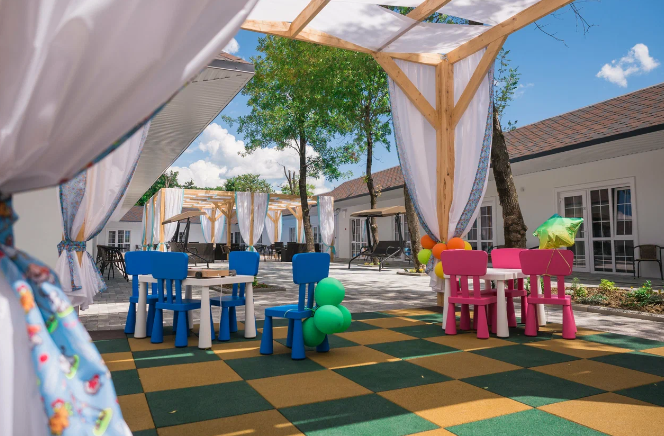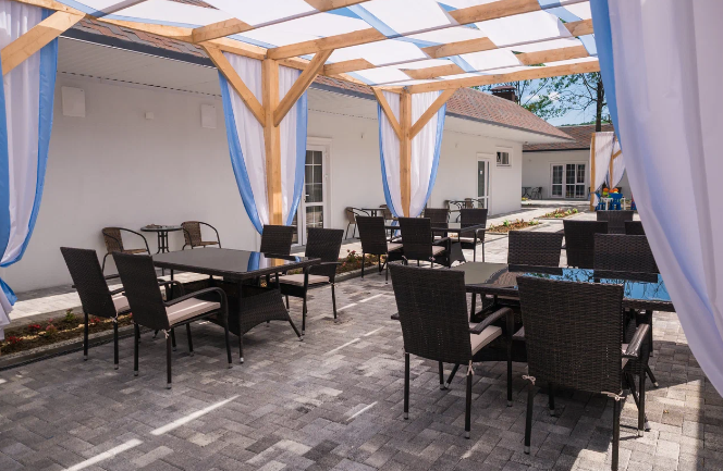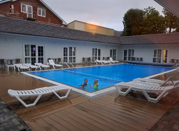 База отдыха подходит для семейного размещения. На территории имеются взрослый и детский бассейн, игровая зона, бар, зона отдыха. Завтраки входят в проживание.