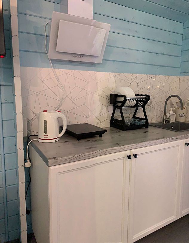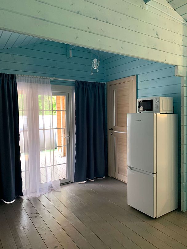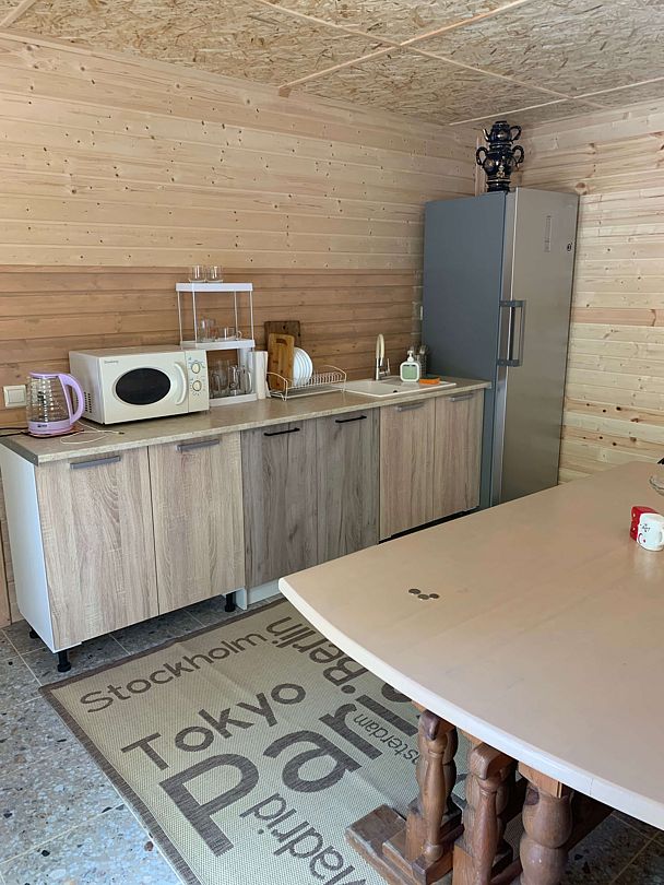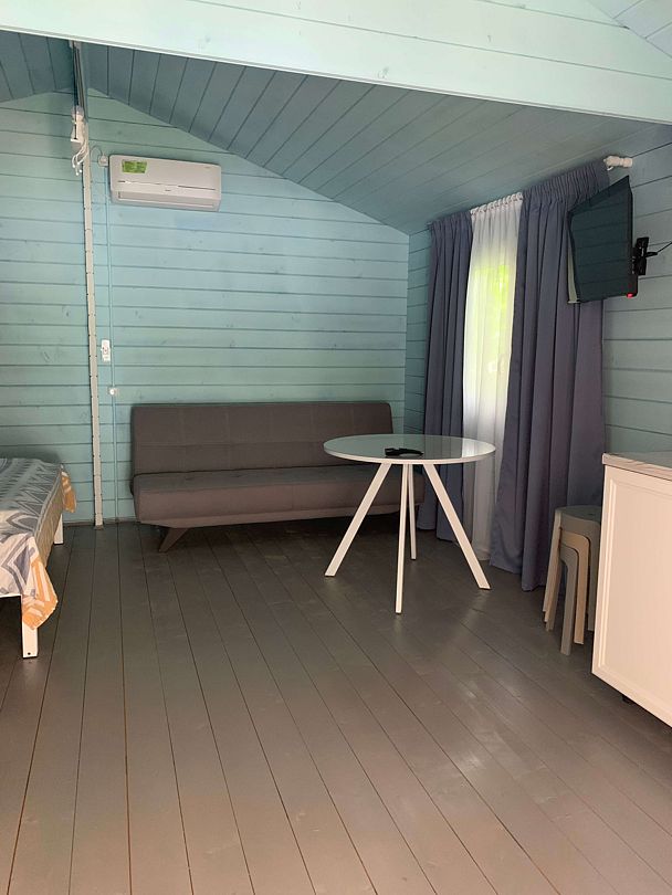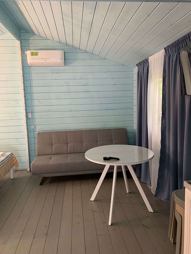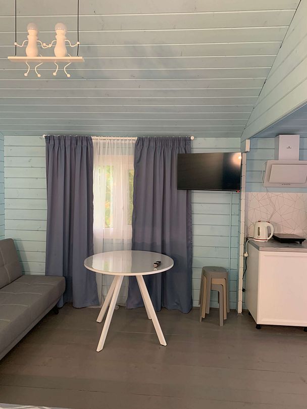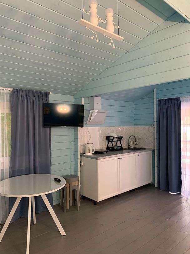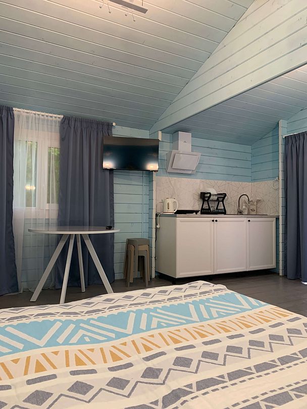 В каждом доме вас ждет просторная двуспальная кровать, телевизор со Smart TV и WI-FI и охлаждающая сплит-система. Для вашего удобства оборудована кухня с двухкамерным холодильником, микроволновой печью, индукционной плитой и всей необходимой посудой. Также в домиках имеется собственная ванная комната.