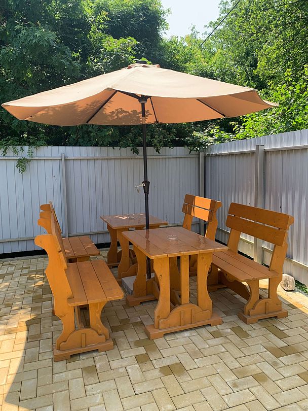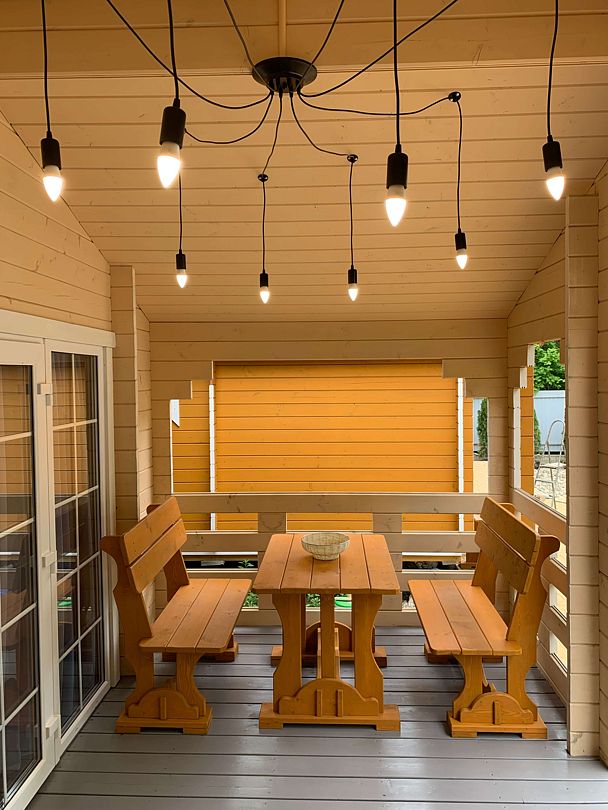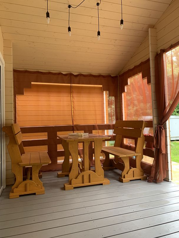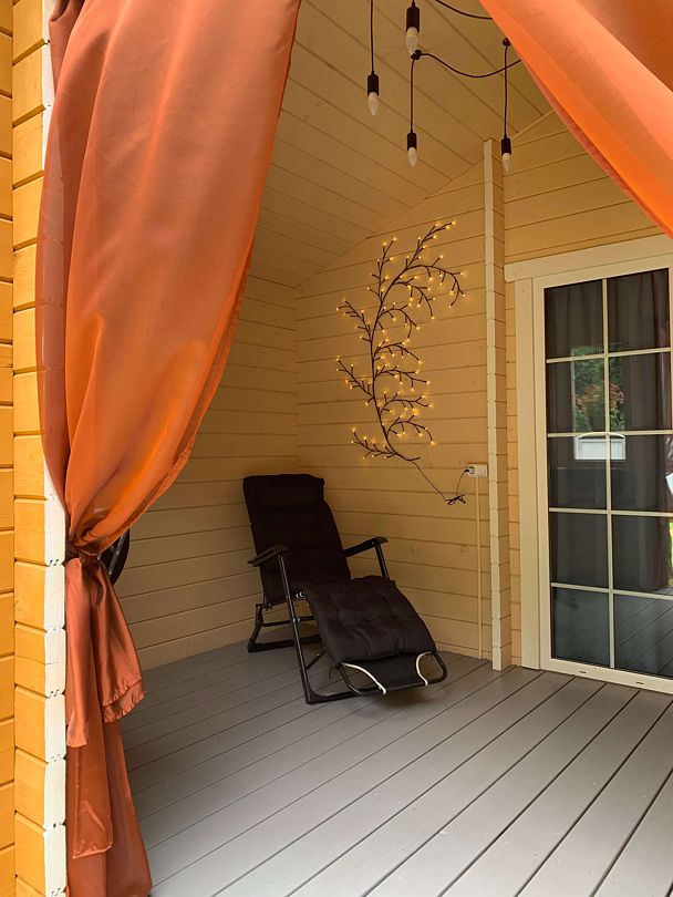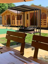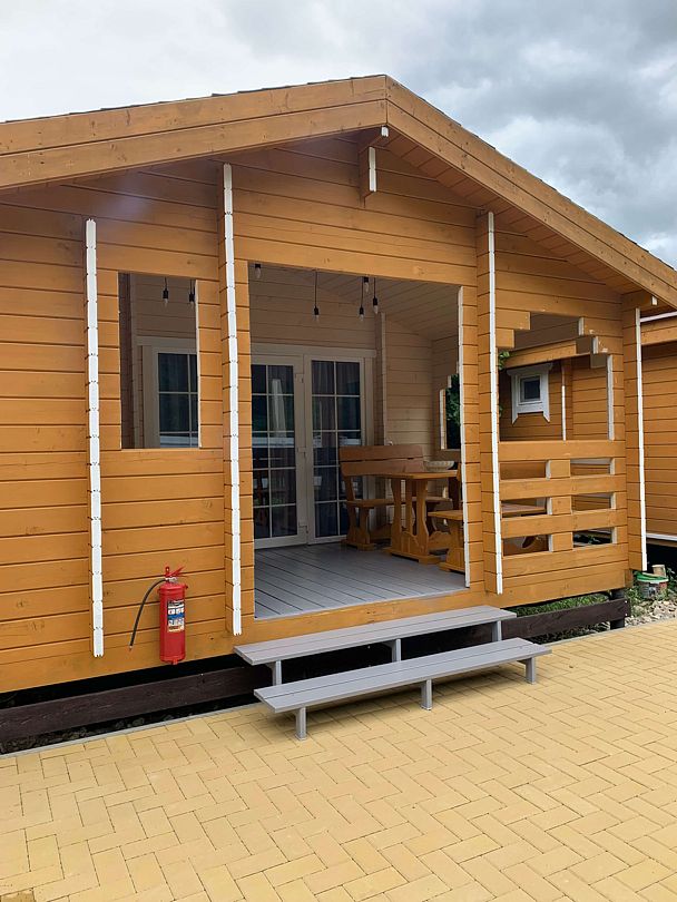 - у каждого домика своя веранда, где можно насладиться утренним кофе, семейным ужином или просто полюбоваться природой. Здесь каждый найдёт уголок для себя — для отдыха, уединения и настоящего расслабления.