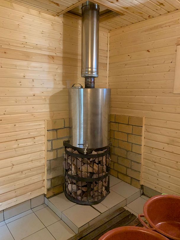 В парной стоит бак с водой, который нагревается от печи. Эта вода используется для создания дополнительного пара или для обливания тела. В парной можно не только париться, но и мыться — после жаркого сеанса с веником, когда тело наполнено теплом, приходит время освежиться и смыть всё лишнее. Парная в русской бане на дровах — это не просто место для прогрева, а настоящая помывочная, где тело и душа очищаются от усталости и забот. Здесь, под мягким влажным паром, раскрываются поры, кожа становится гладкой, а мышцы расслабляются.