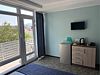 телевизор, Wi-Fi, кондиционер, ванна или душевая кабина, банные полотенца, балкон, двуспальная кровать, шкаф для одежды, багажная тумба, набор посуды, сейф, чайник, плиточное покрытие, стаканы, туалет, сушилка для белья, раскладное кресло, мини-холодильник, номер для некурящих, кресло-кровать, вешалки-плечикиВ номере