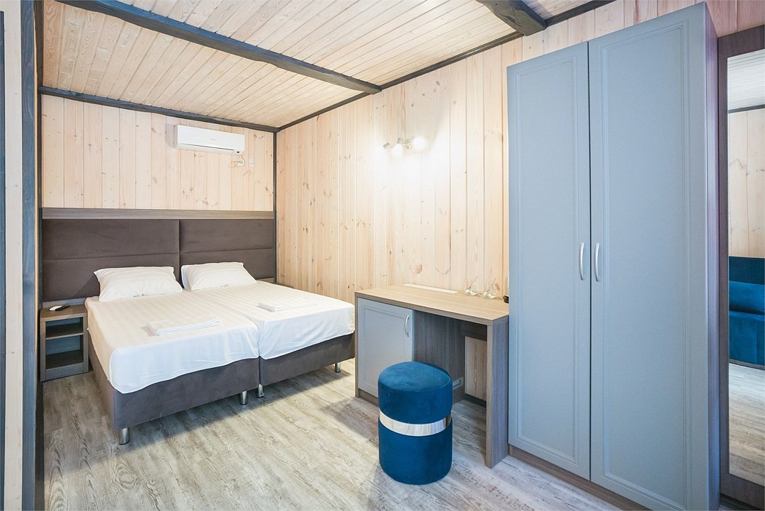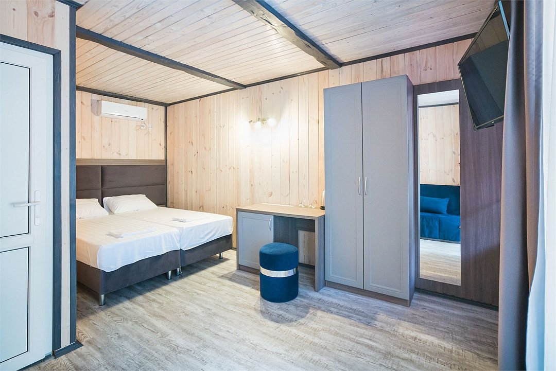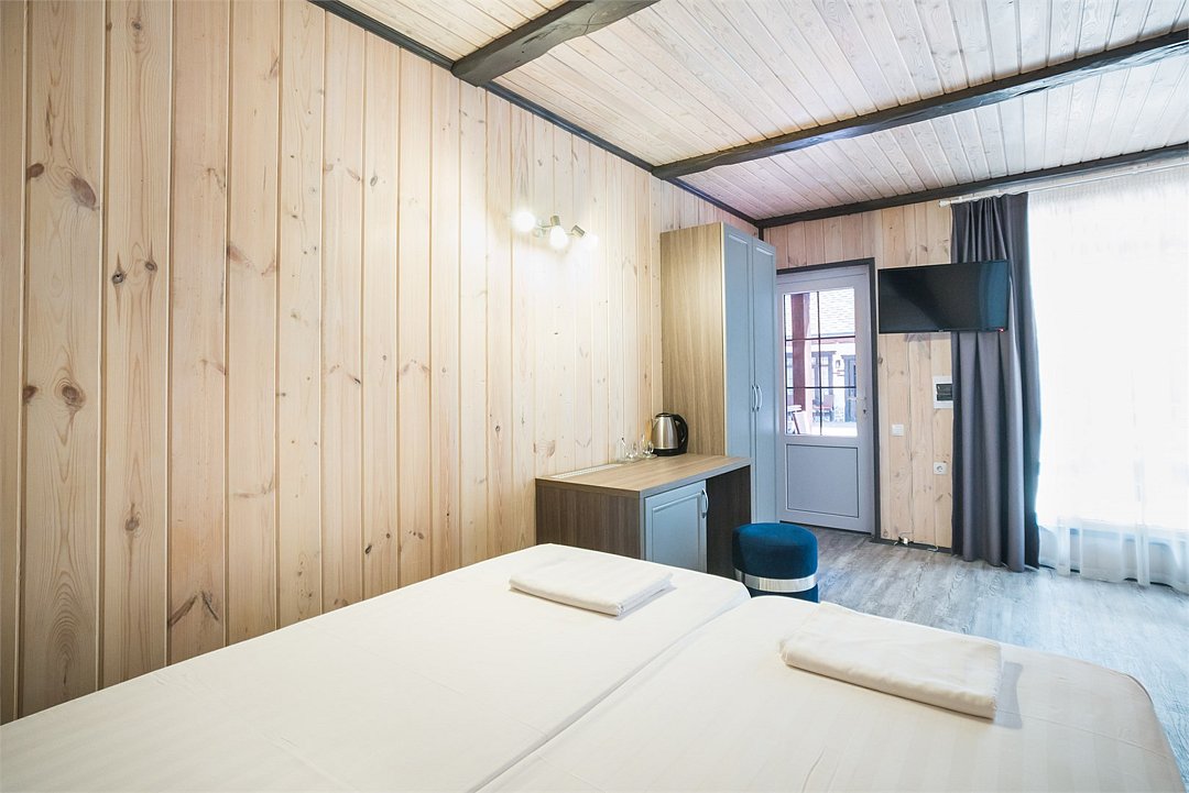 телевизор, Wi-Fi, интернет, душевая кабина, санузел, двуспальная кровать, две односпальные кровати, вид во двор, туалетные средства, сплит-система, диван-кровать, вид на бассейн, бассейн, уличная мебельВ номере