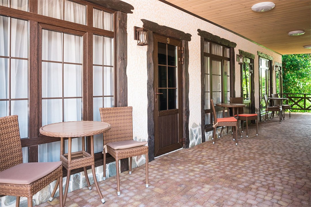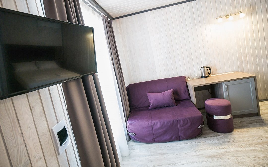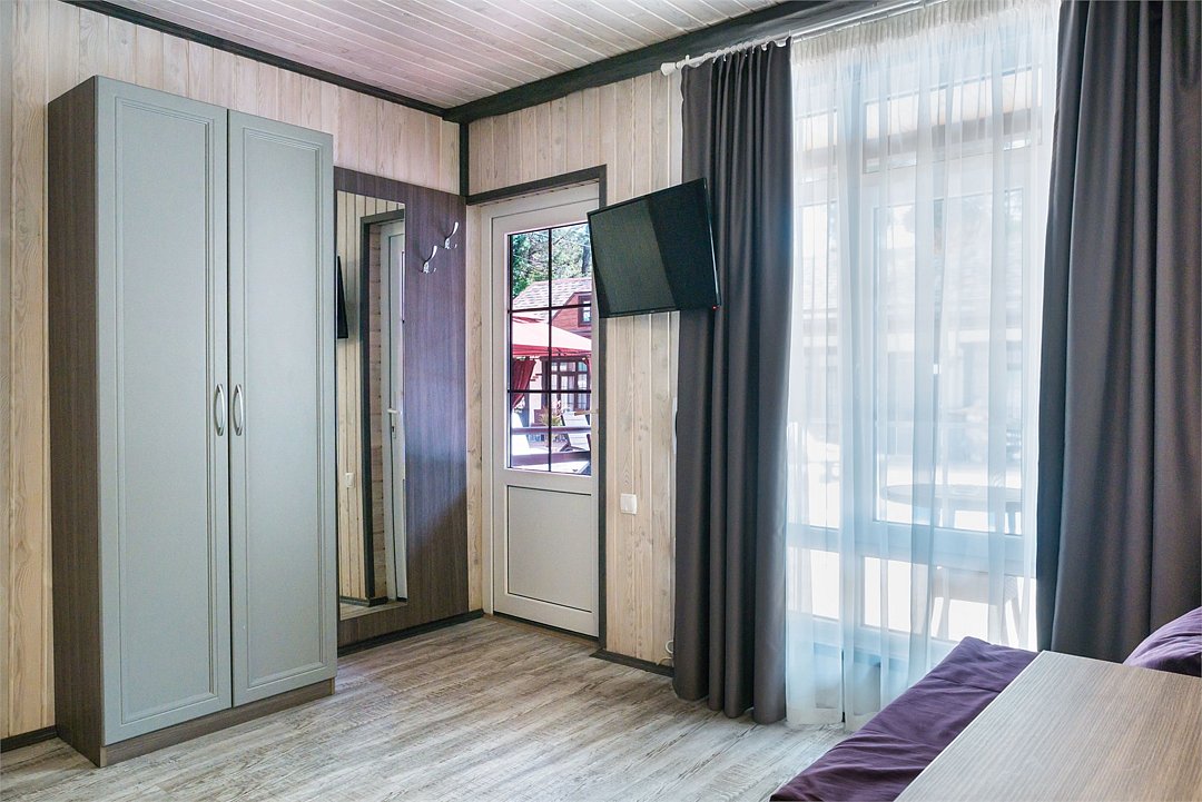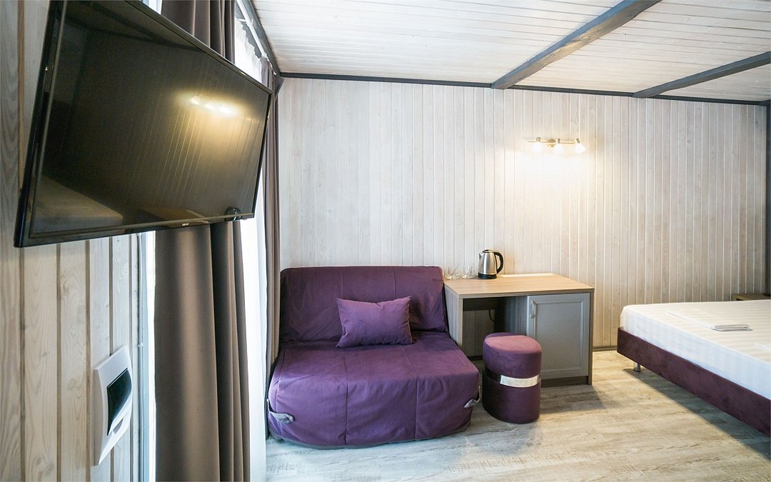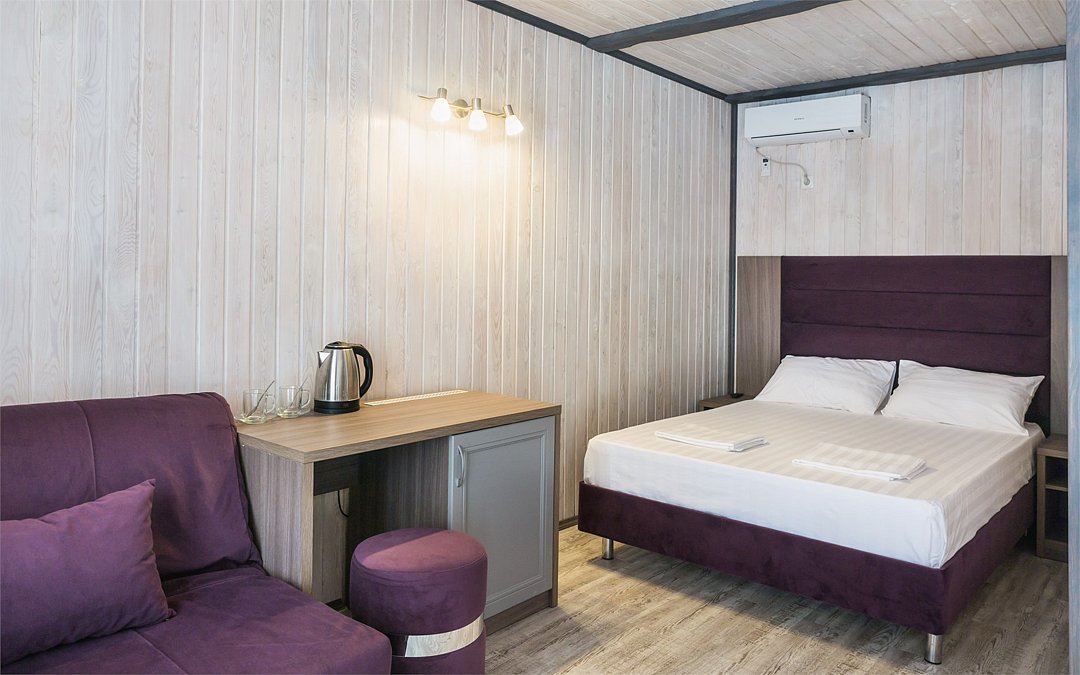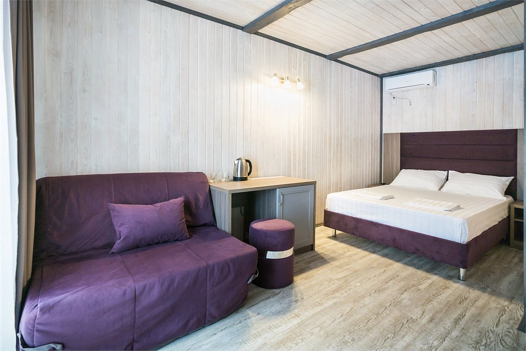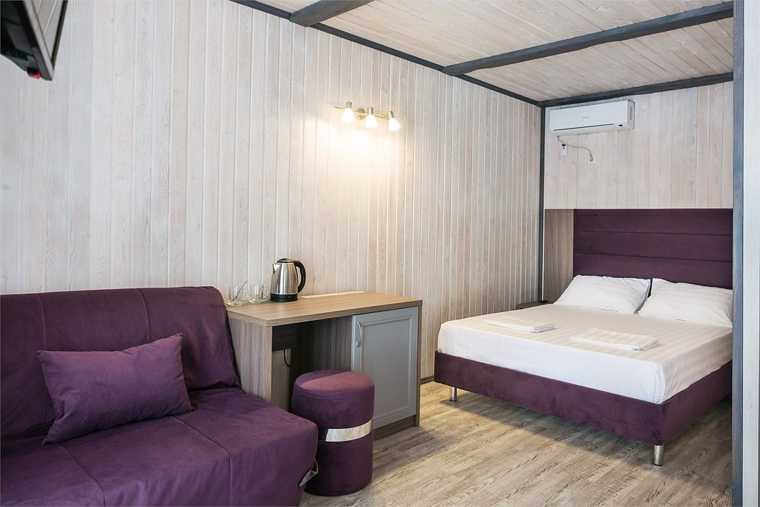 телевизор, Wi-Fi, интернет, душевая кабина, санузел, двуспальная кровать, вид во двор, туалетные средства, сплит-система, диван-кровать, вид на бассейн, бассейн, уличная мебельВ номере