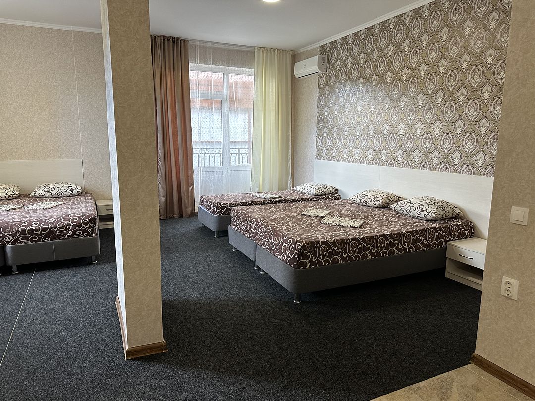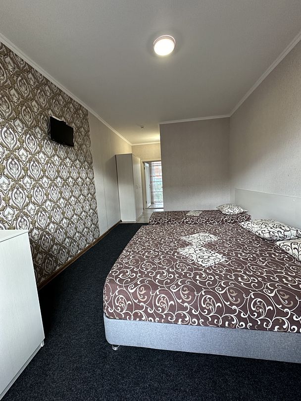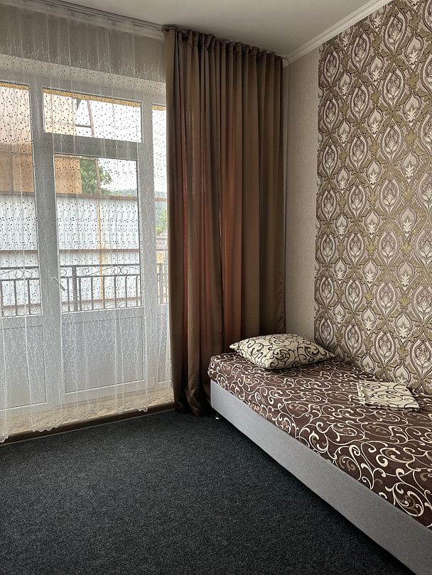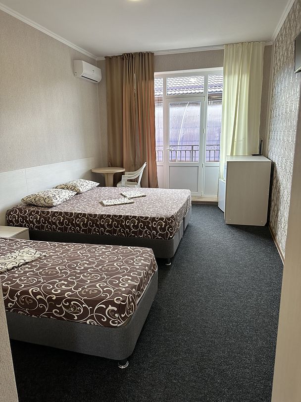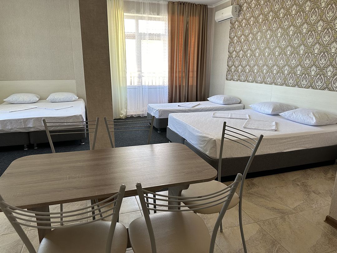 Можно удобно разместиться в номерах (3-х, 4-х и 5-ти местных). Высокие потолки, просторные, светлые и уютные комнаты с холодильником, кондиционером, телевизором, WiFi, ванной комнатой сделают ваш отдых комфортным. Бесплатная автостоянка для вашего автомобиля на территории гостевого дома. Для приготовления пищи обустроена кухня со всем необходимым: набором посуды, печкой, микроволновкой, большим, вместительным холодильником и местом, где может вместе собраться вся семья.