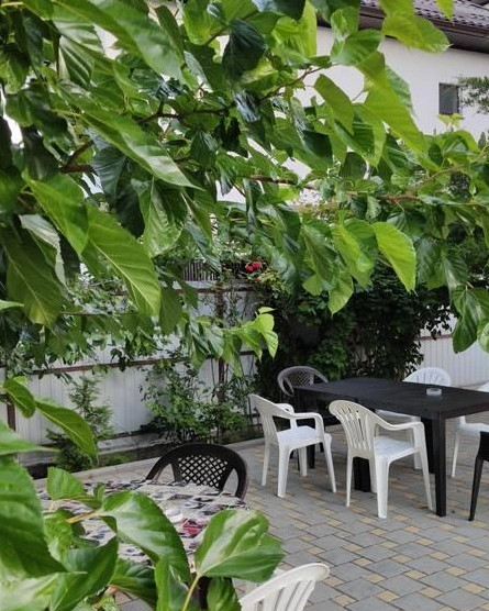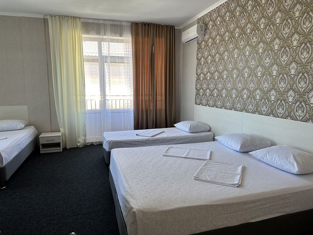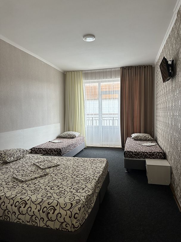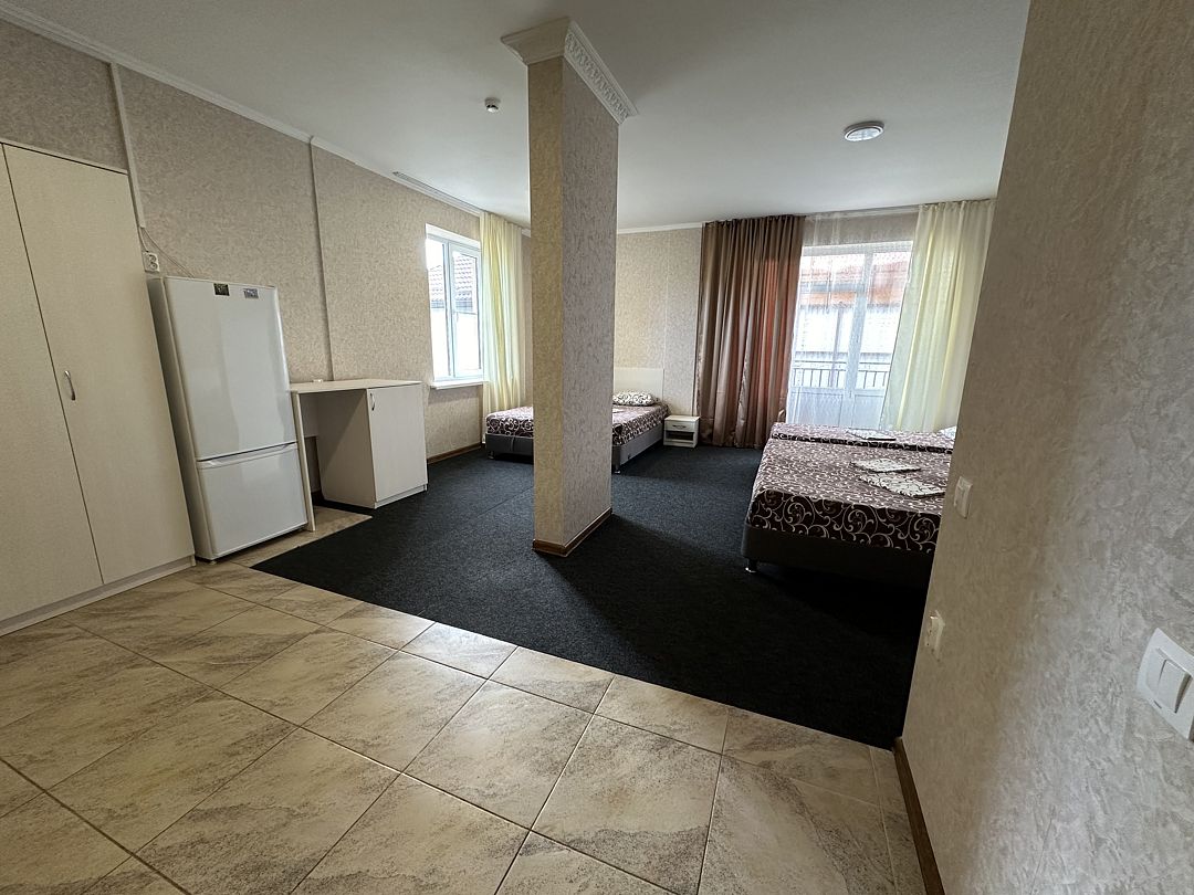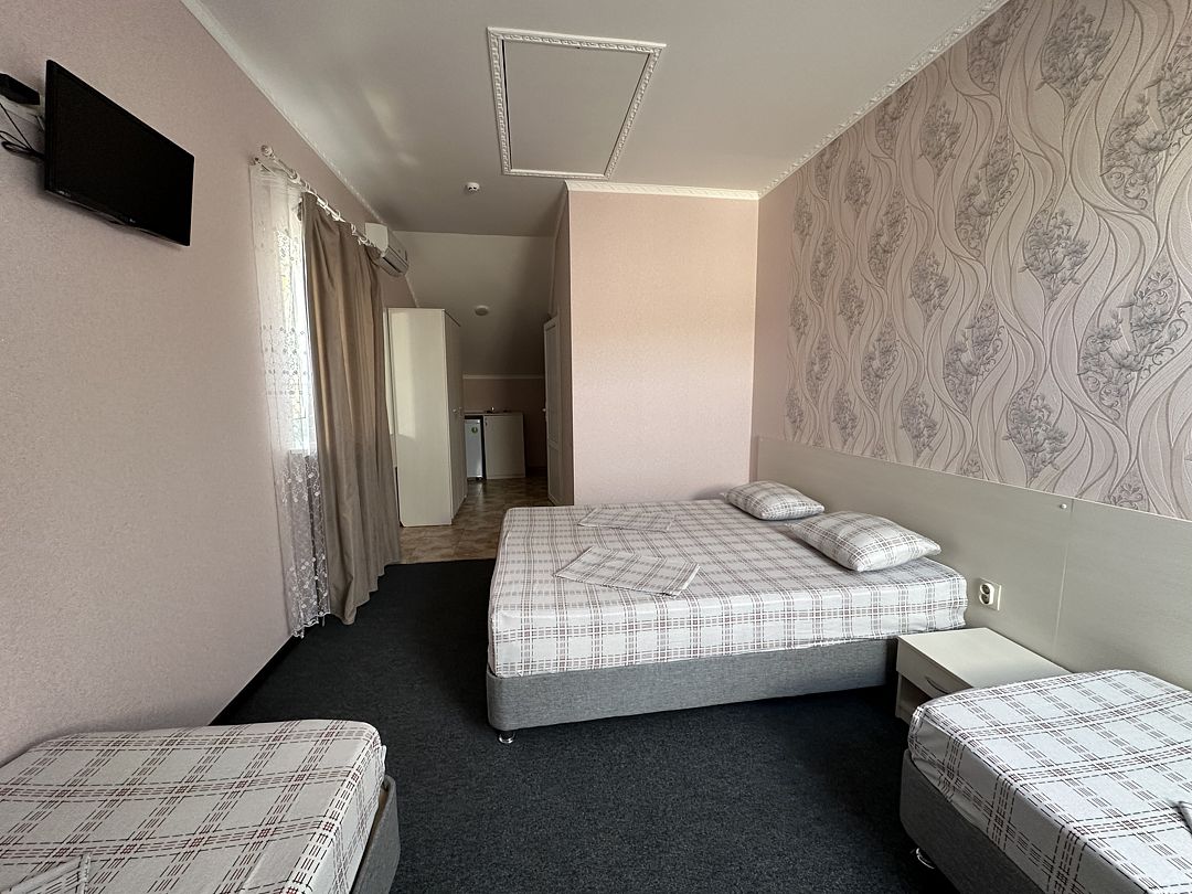 Можно удобно разместиться в номерах (3-х, 4-х и 5-ти местных). Высокие потолки, просторные, светлые и уютные комнаты с холодильником, кондиционером, телевизором, WiFi, ванной комнатой сделают ваш отдых комфортным. Бесплатная автостоянка для вашего автомобиля на территории гостевого дома. Для приготовления пищи обустроена кухня со всем необходимым: набором посуды, печкой, микроволновкой, большим, вместительным холодильником и местом, где может вместе собраться вся семья.