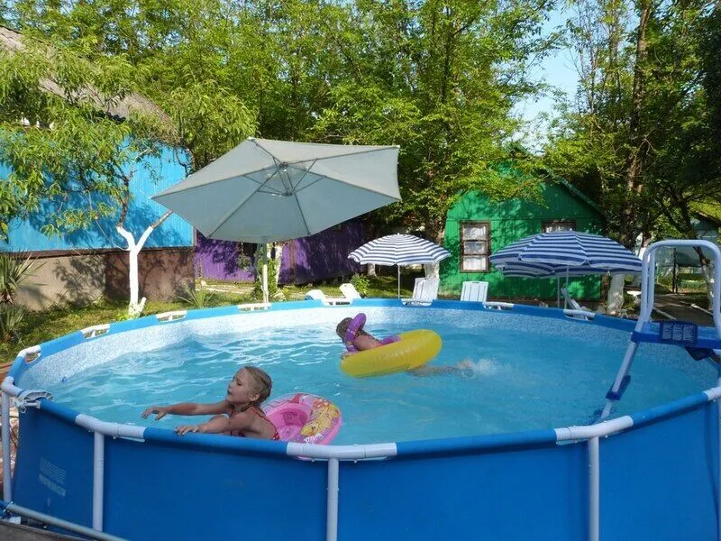 Тип бассейна: открытый бассейн, каркасный бассейнРядом с бассейном: шезлонги, зонтикиВ теплое время года на базе отдыха устанавливается каркасный бассейн среднего размера для взрослых и детей.